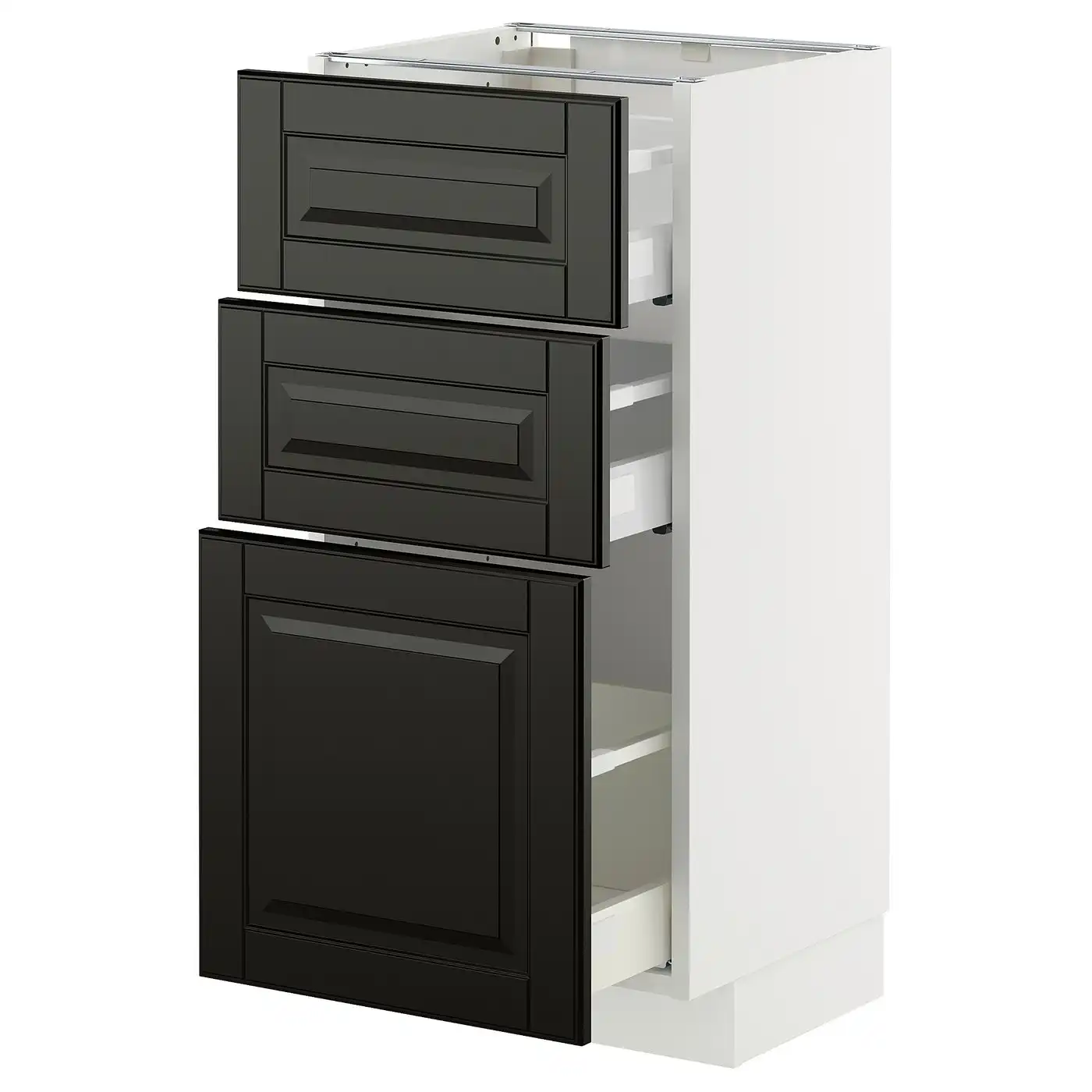 IKEA METOD Base cabinet with 3 drawers 40x37 cm MAXIMERA white/BODBYN black