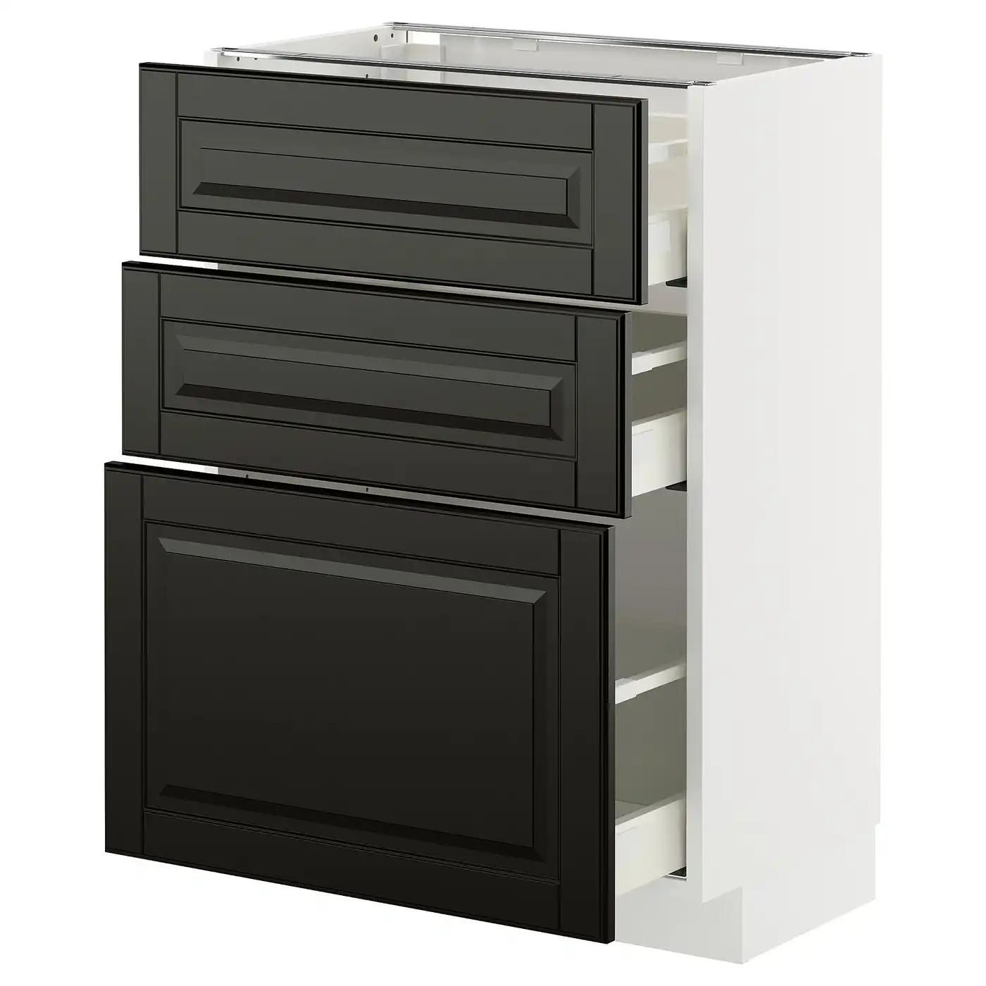IKEA METOD Base cabinet with 3 drawers 60x37 cm MAXIMERA white/BODBYN black