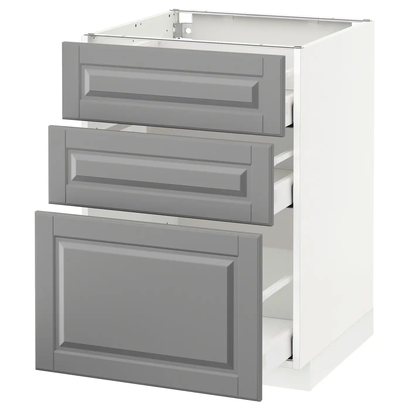 METOD / MAXIMERA Base cabinet with 3 drawers - white/Bodbyn grey 60x60 cm