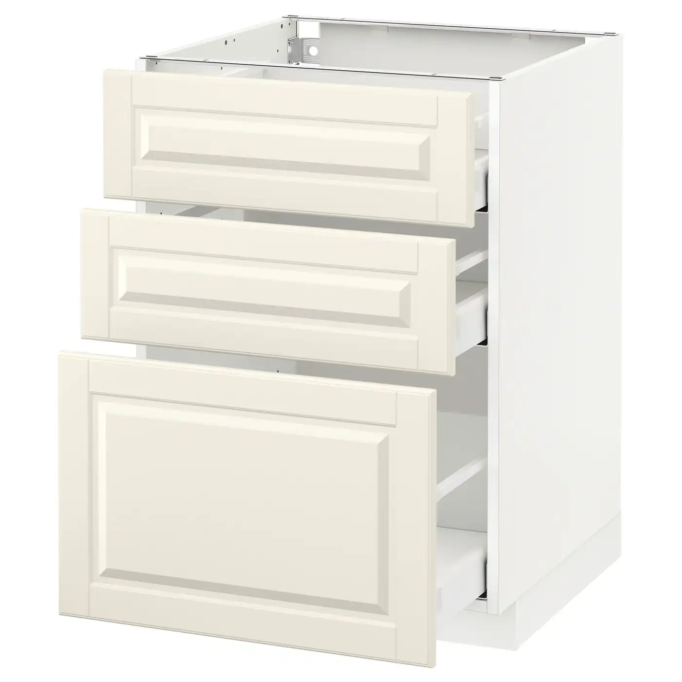 METOD / MAXIMERA Base cabinet with 3 drawers - white/Bodbyn off-white 60x60 cm