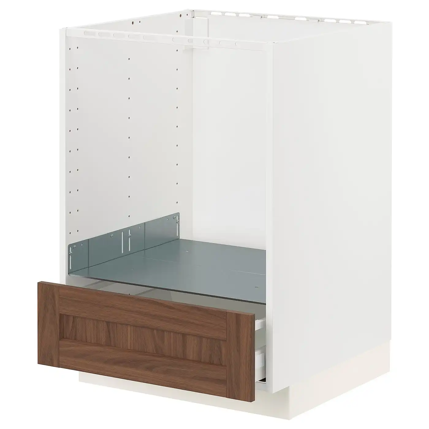 METOD / MAXIMERA Base cabinet for oven with drawer - white Enköping/brown walnut effect 60x60 cm