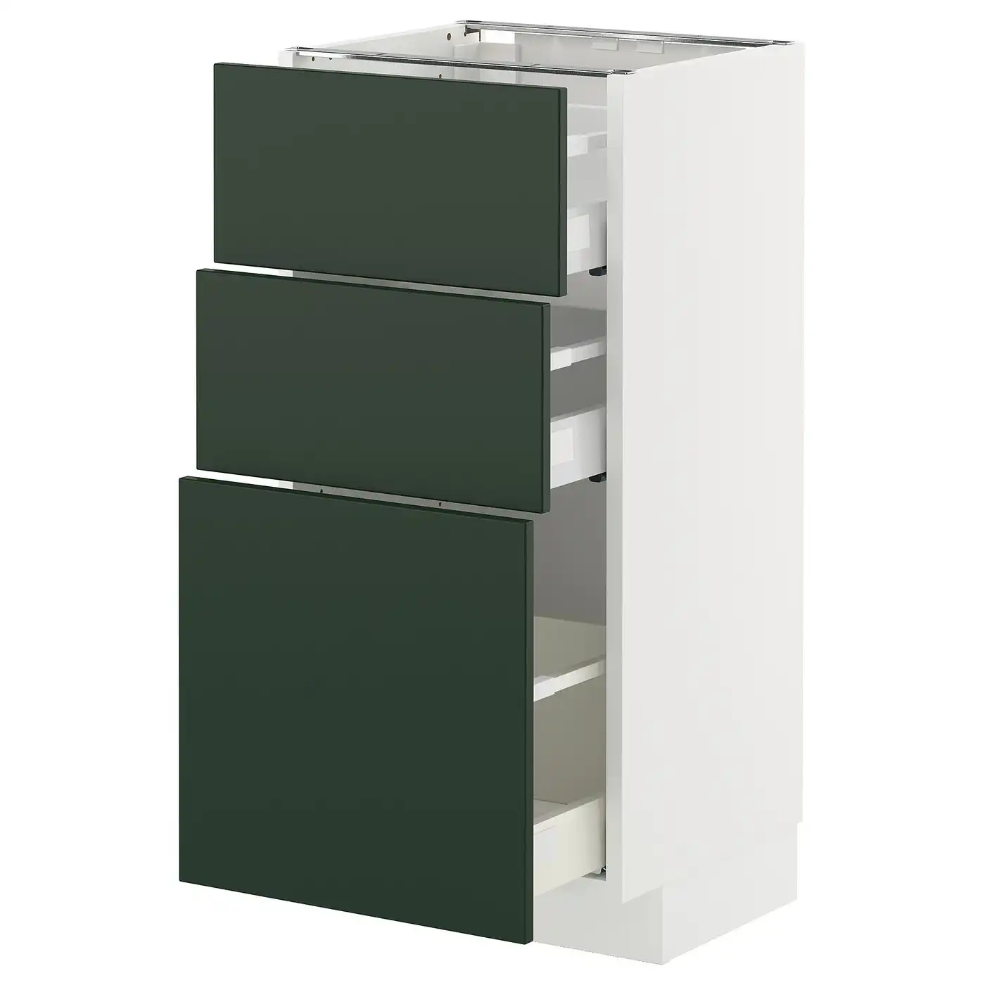 Compare all IKEA METOD Base cabinet with 3 drawers 40x37 cm MAXIMERA white/HAVSTORP deep green prices