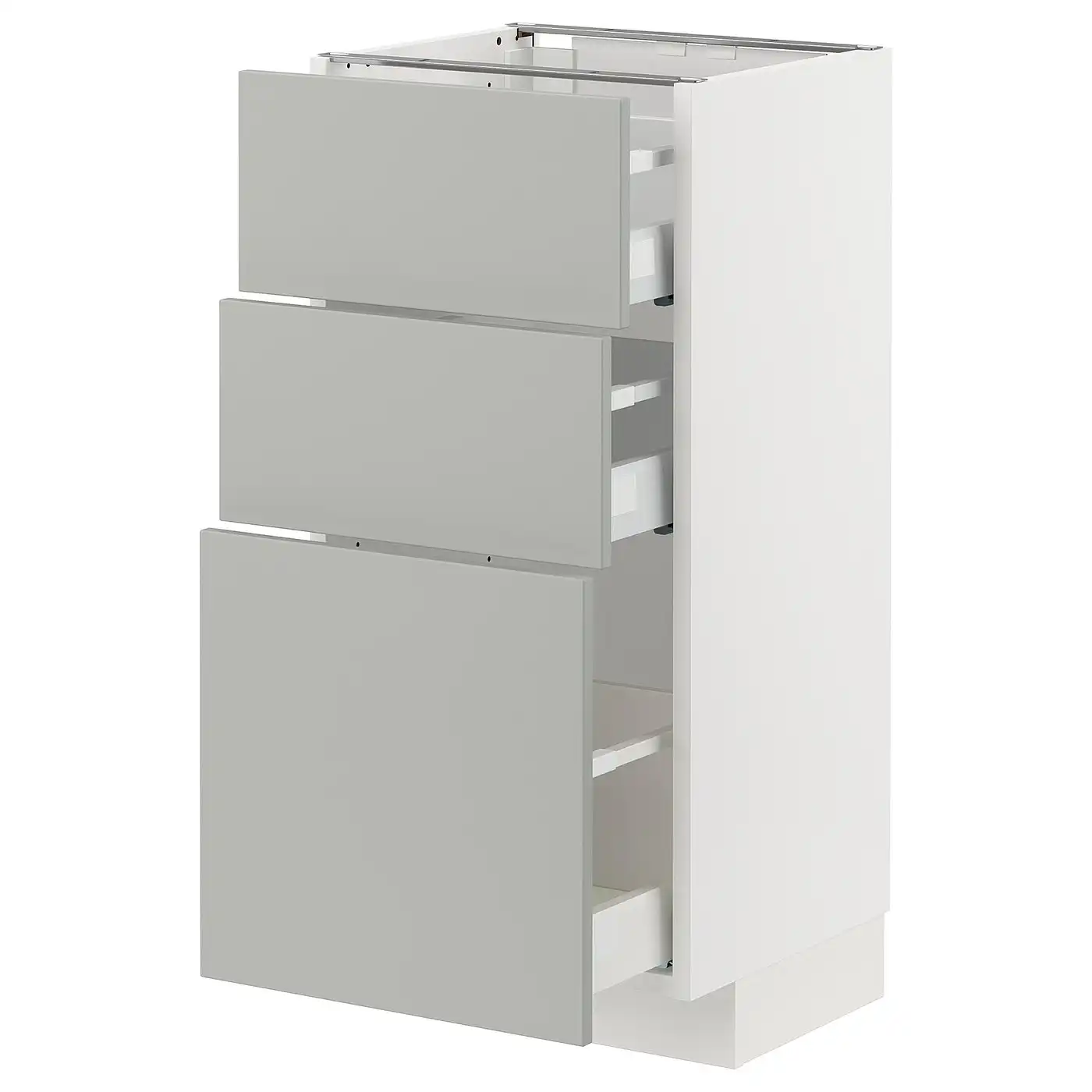 IKEA METOD Base cabinet with 3 drawers 40x37 cm MAXIMERA white/HAVSTORP light grey