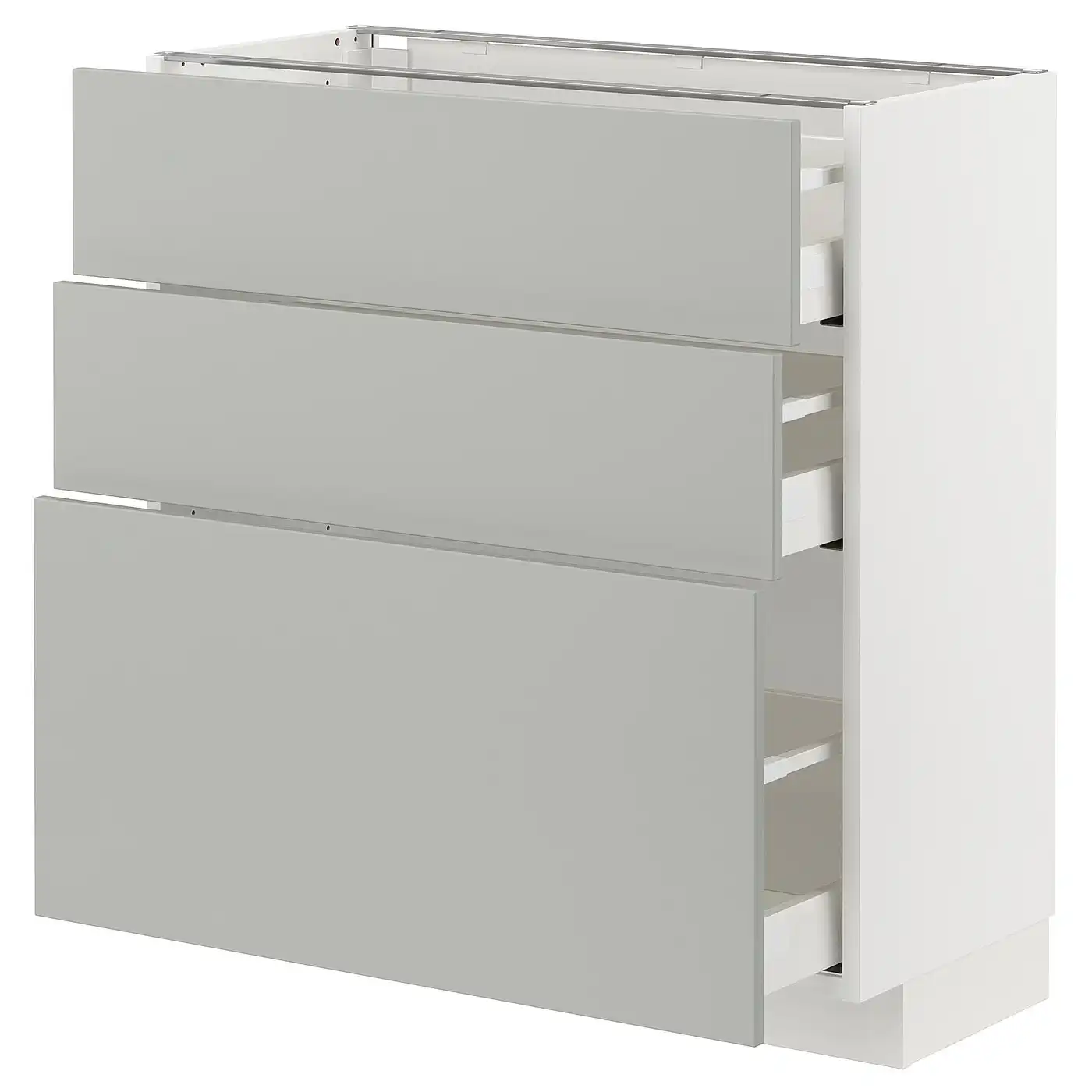 Compare all IKEA METOD Base cabinet with 3 drawers 80x37 cm MAXIMERA white/HAVSTORP light grey prices