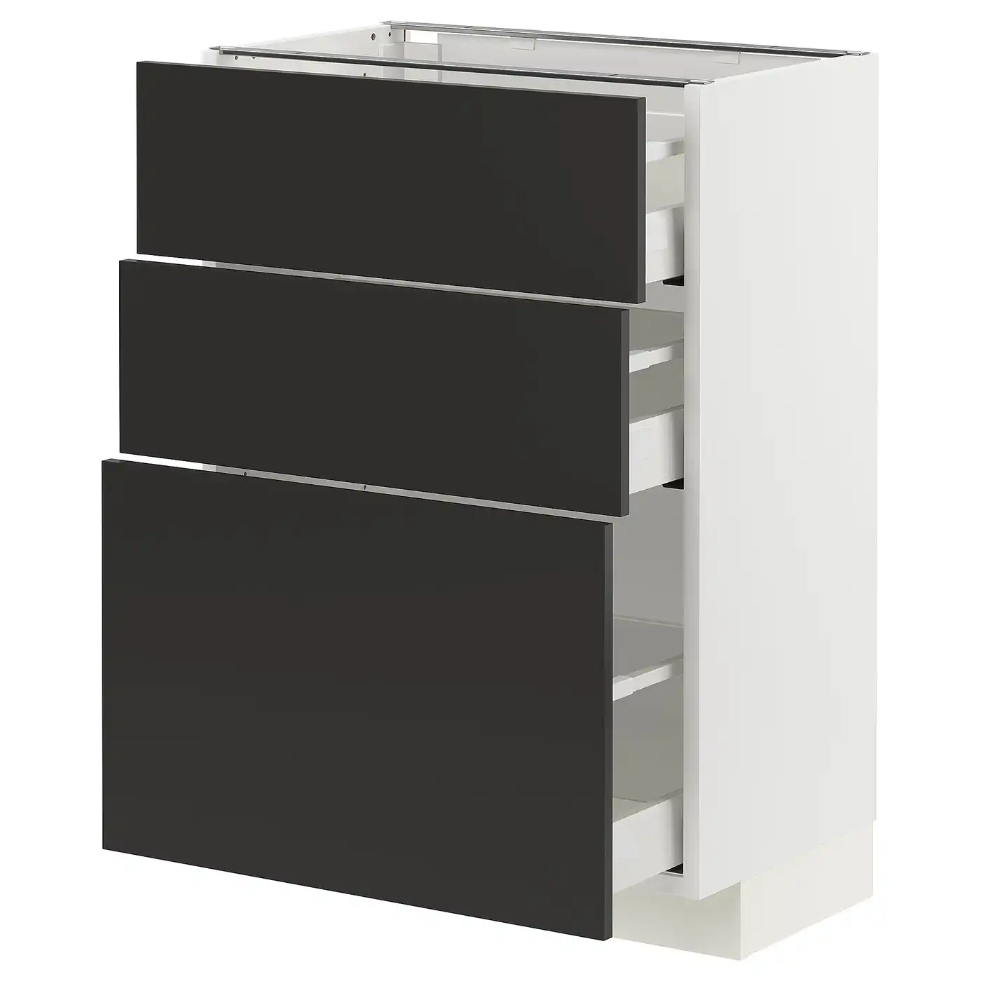 METOD / MAXIMERA Base cabinet with 3 drawers - white/Nickebo matt anthracite 60x37 cm