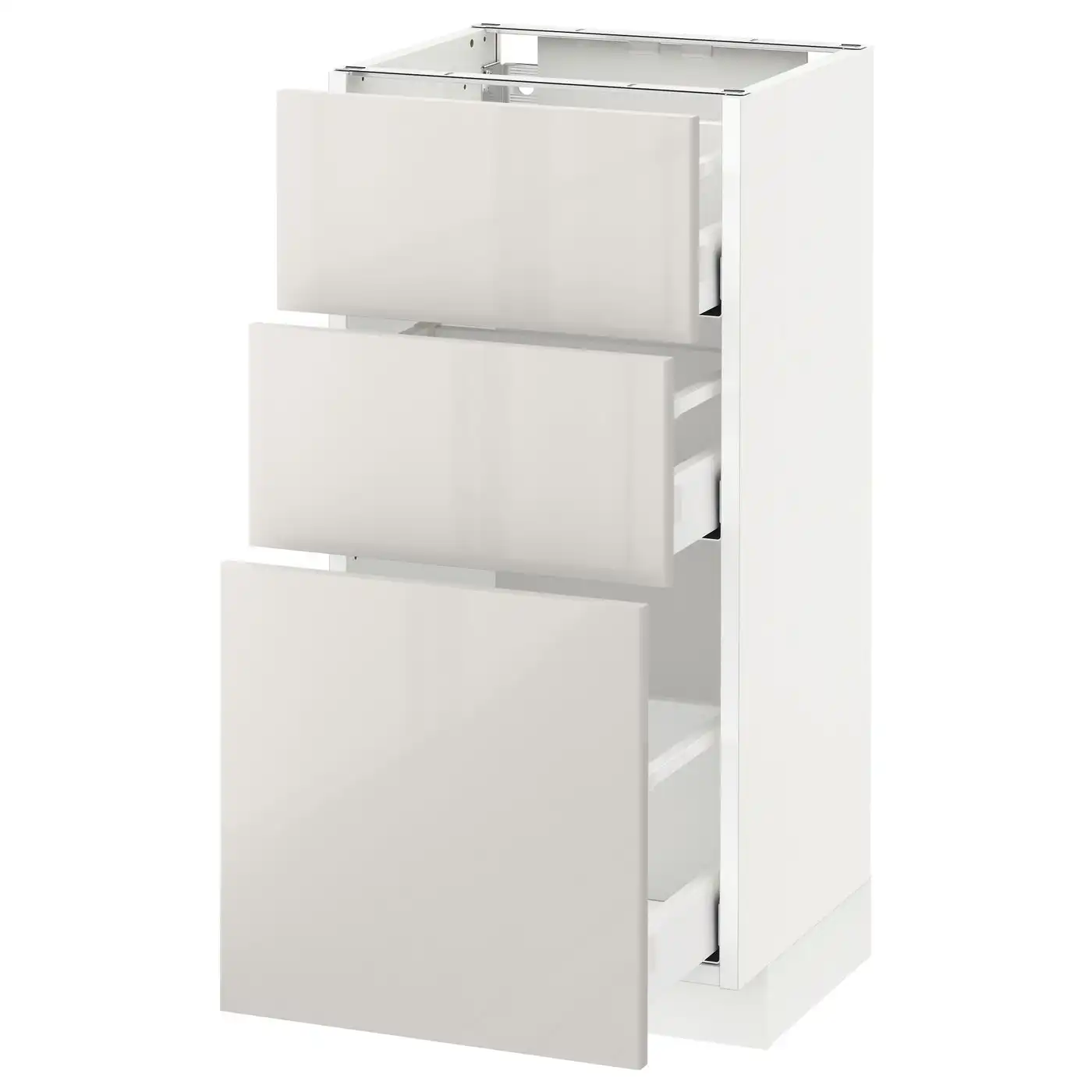 IKEA METOD Base cabinet with 3 drawers 40x37 cm MAXIMERA white/RINGHULT light grey