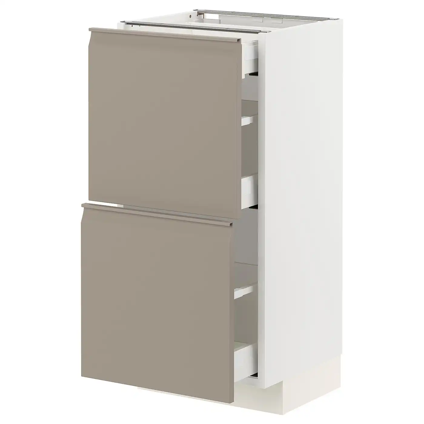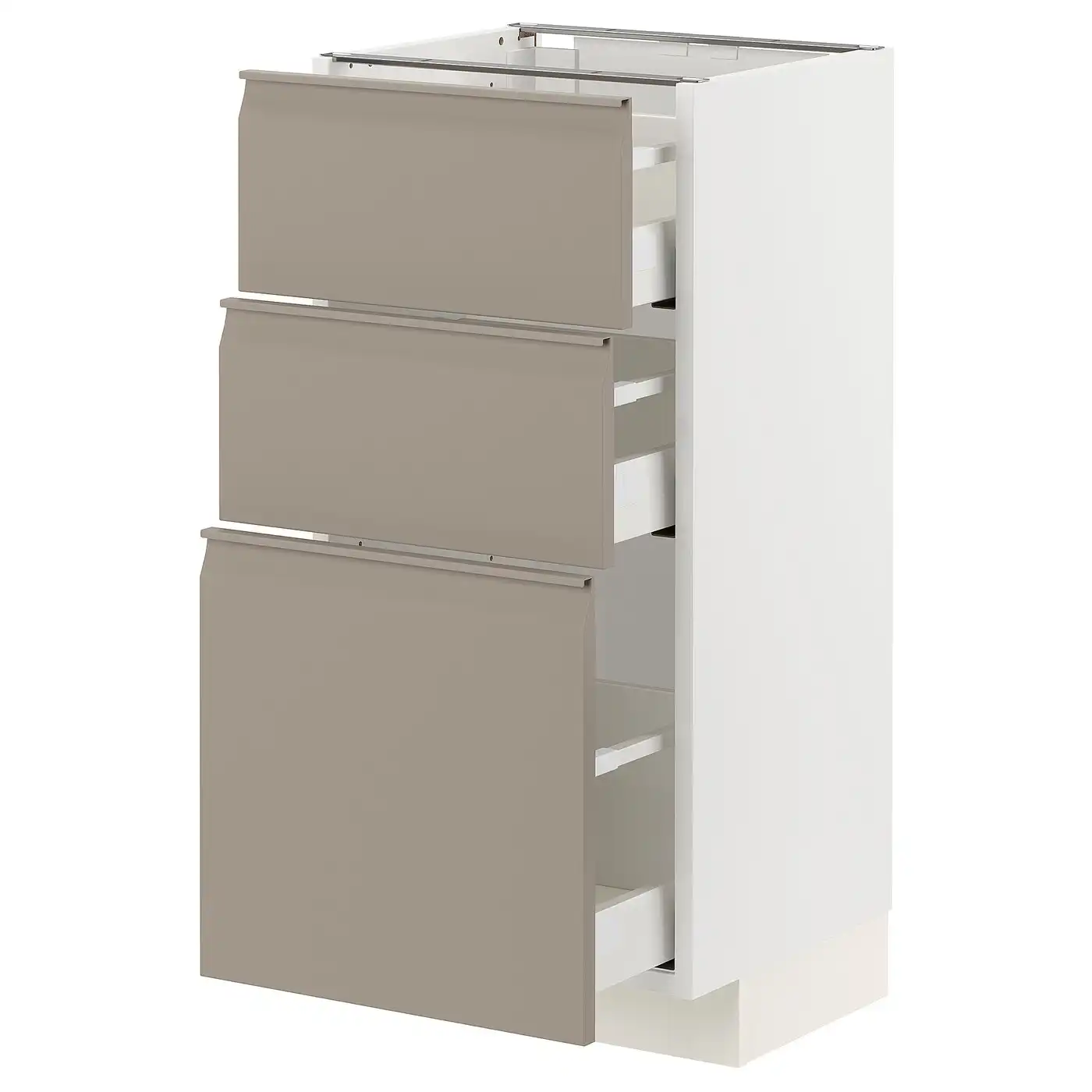 Compare all IKEA METOD Base cabinet with 3 drawers 40x37 cm MAXIMERA white/UPPLÖV Matt dark beige/white prices