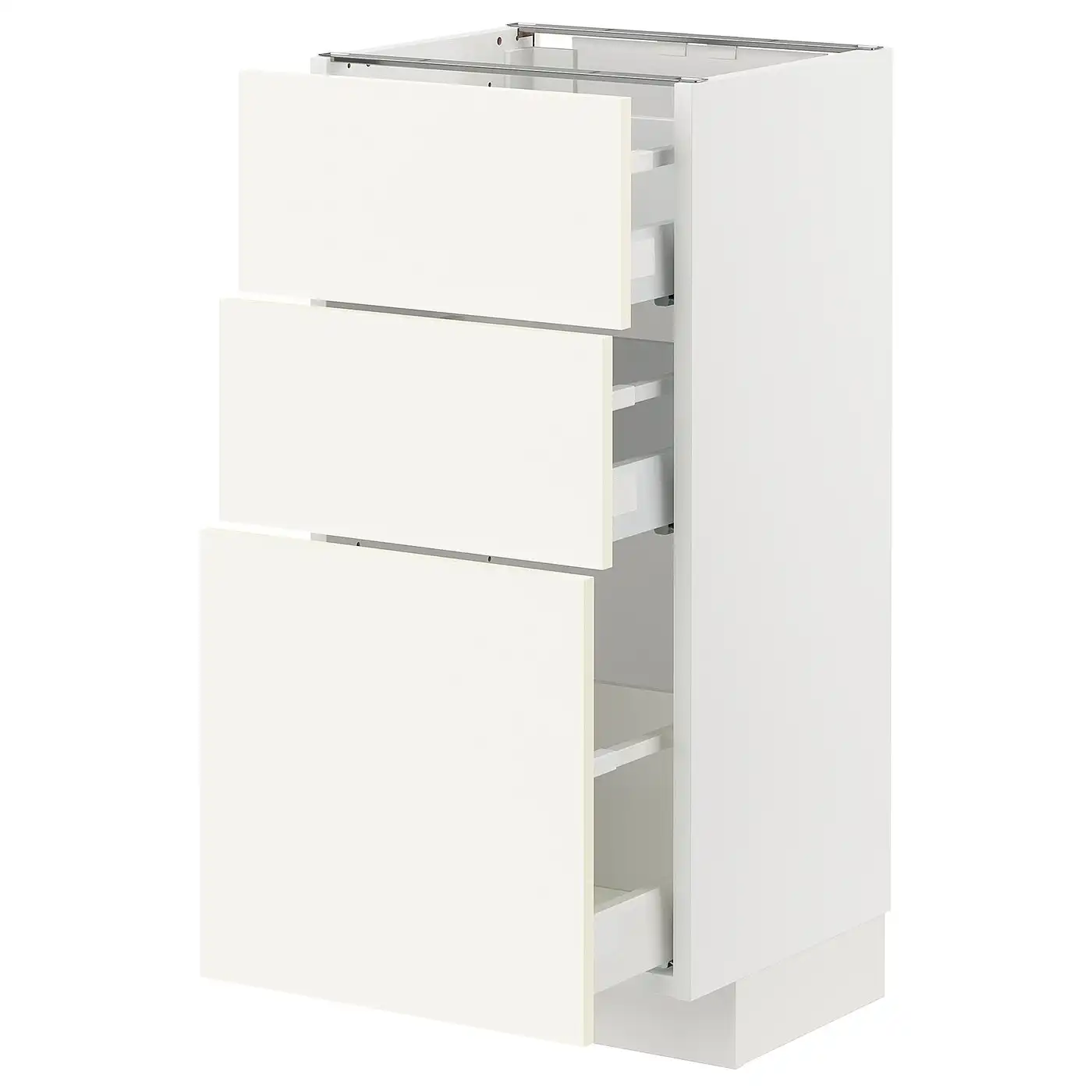 IKEA METOD Base cabinet with 3 drawers 40x37 cm MAXIMERA white/VALLSTENA white