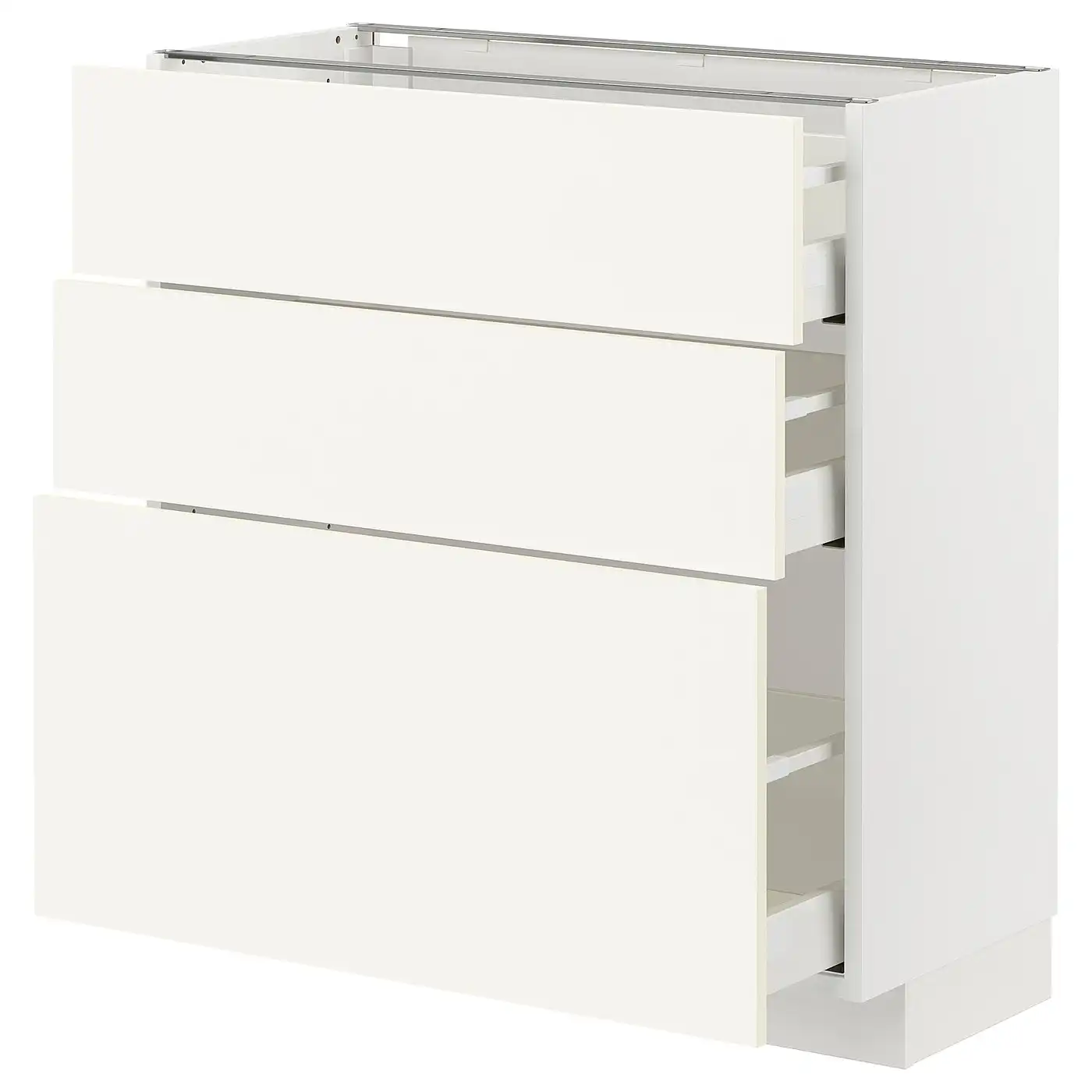 IKEA METOD Base cabinet with 3 drawers 80x37 cm MAXIMERA white/VALLSTENA white