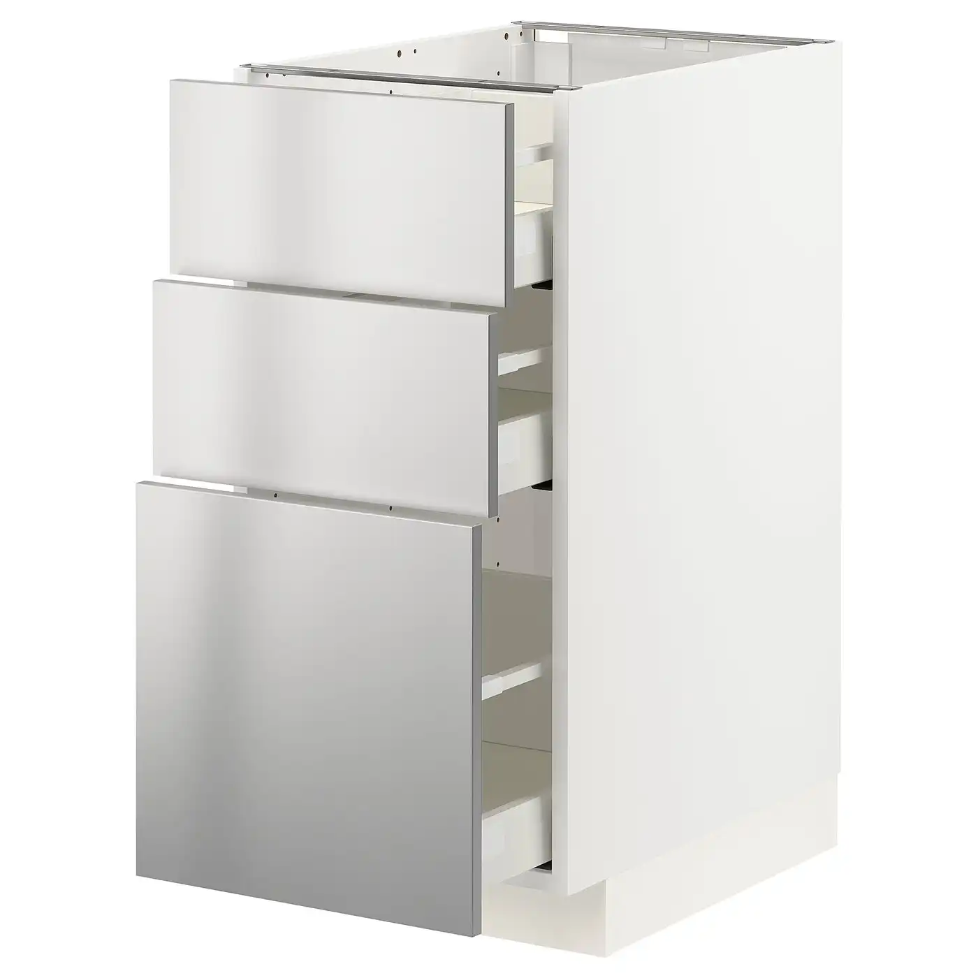IKEA METOD Base cabinet with 3 drawers 40x60 cm MAXIMERA white/Vårsta stainless steel