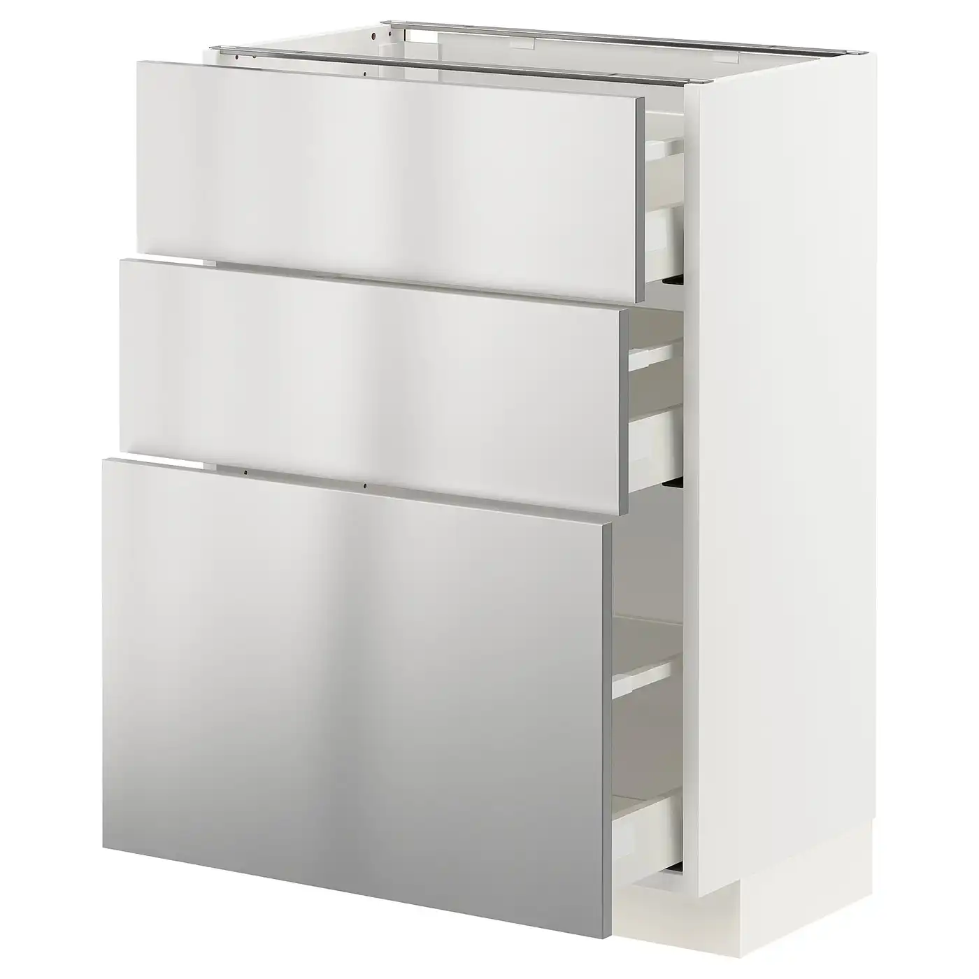 IKEA METOD Base cabinet with 3 drawers 60x37 cm MAXIMERA white/Vårsta stainless steel