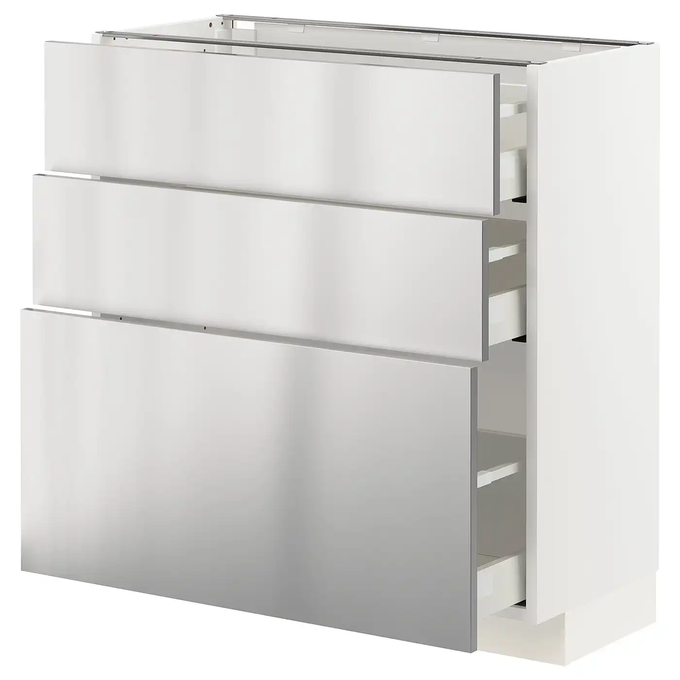 IKEA METOD Base cabinet with 3 drawers 80x37 cm MAXIMERA white/Vårsta stainless steel