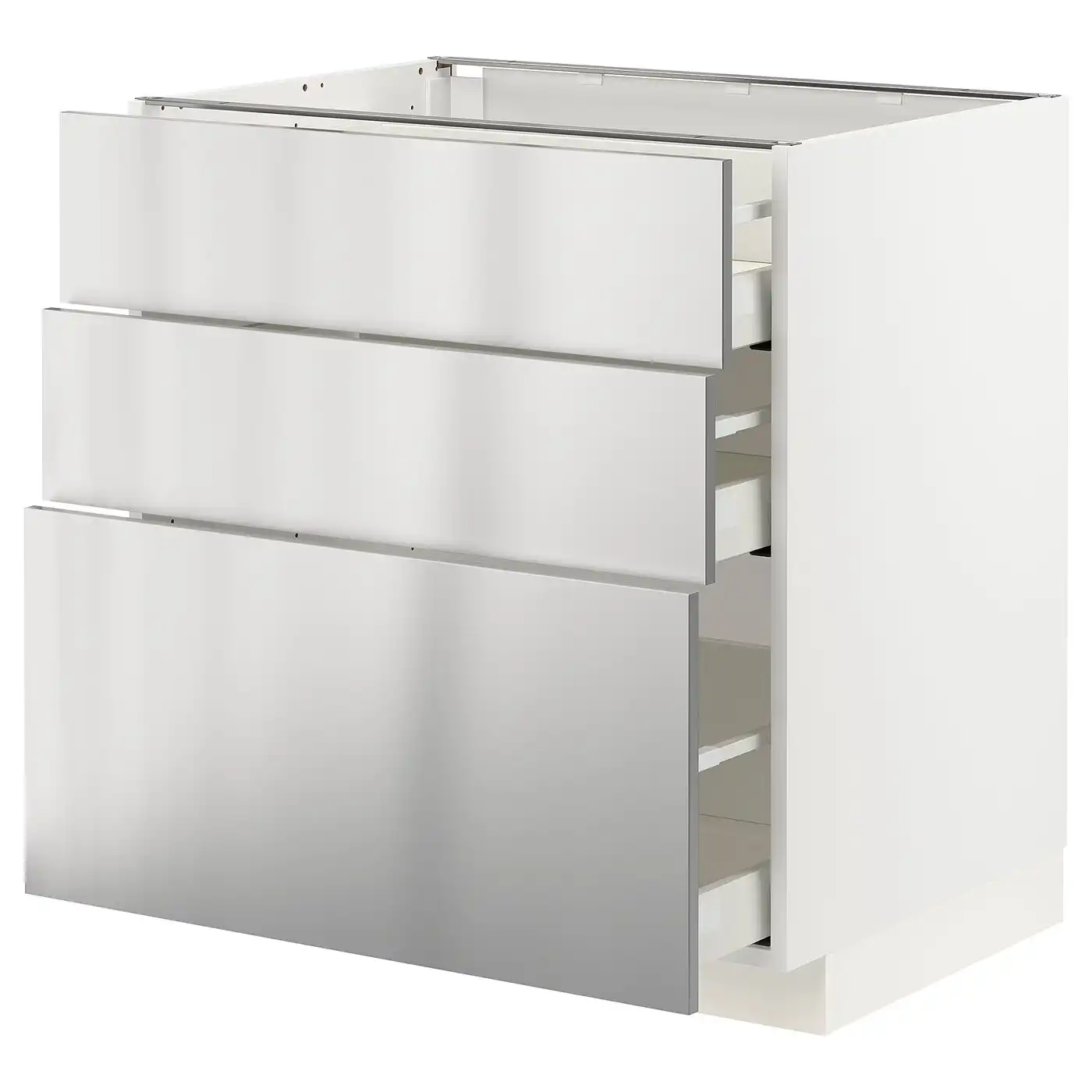 IKEA METOD Base cabinet with 3 drawers 80x60 cm MAXIMERA white/VÅRSTA stainless steel