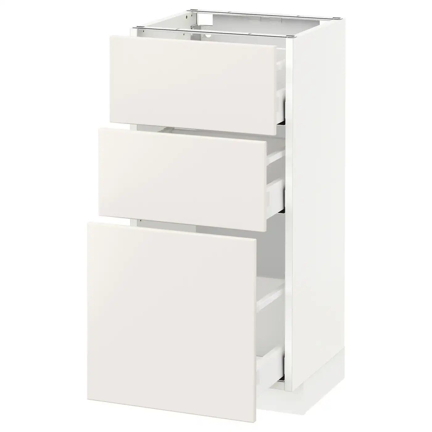 IKEA METOD Base cabinet with 3 drawers 40x37 cm MAXIMERA white/VEDDINGE white