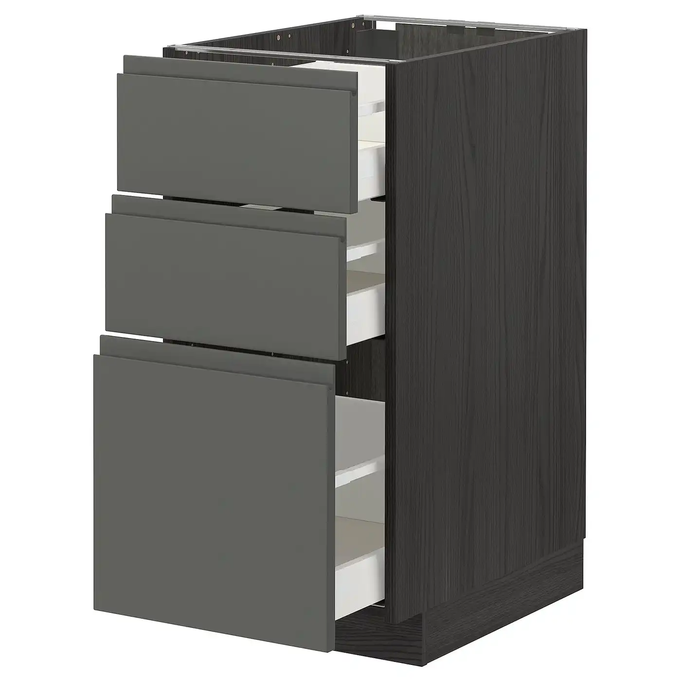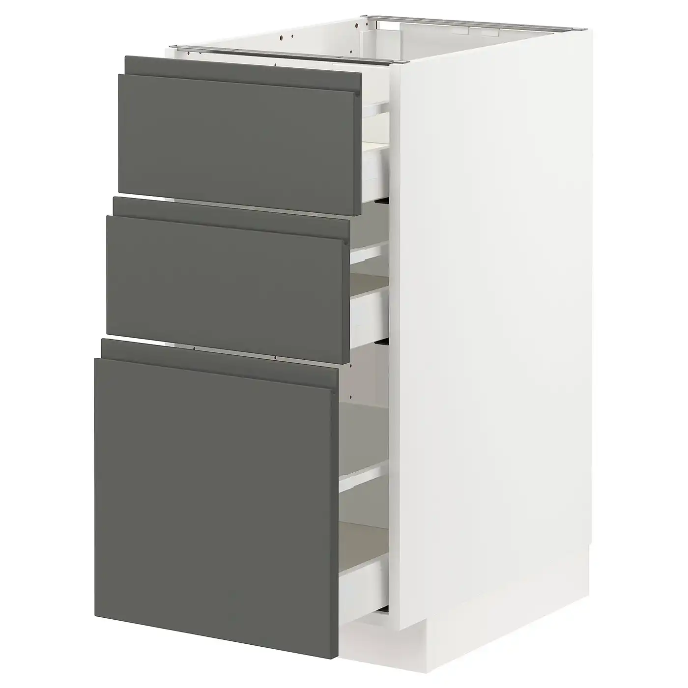 Compare all IKEA METOD Base cabinet with 3 drawers 40x60 cm MAXIMERA white/VOXTORP dark grey prices