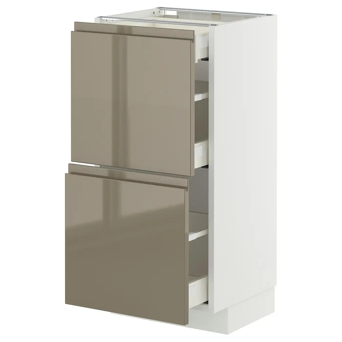 METOD / MAXIMERA Base cab with 2 fronts/3 drawers - white/Voxtorp high-gloss dark grey-brown 40x37 cm
