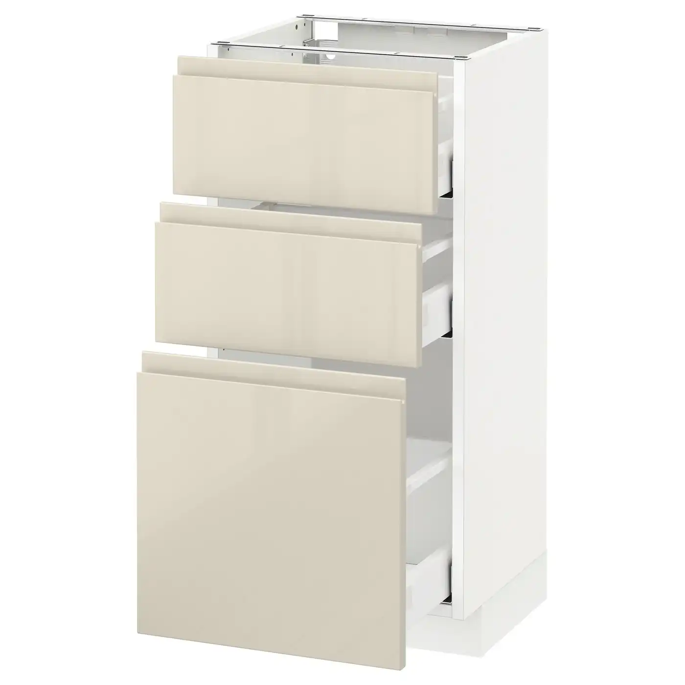 Compare all IKEA METOD Base cabinet with 3 drawers 40x37 cm MAXIMERA white/VOXTORP High-gloss light beige prices