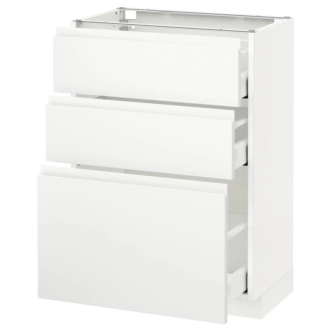 Compare all IKEA METOD Base cabinet with 3 drawers 60x37 cm MAXIMERA white/VOXTORP matt white prices