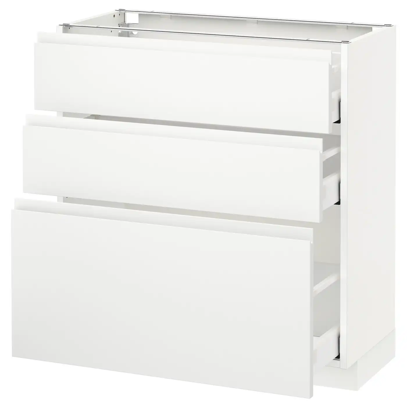 Compare all IKEA METOD Base cabinet with 3 drawers 80x37 cm MAXIMERA white/VOXTORP matt white prices