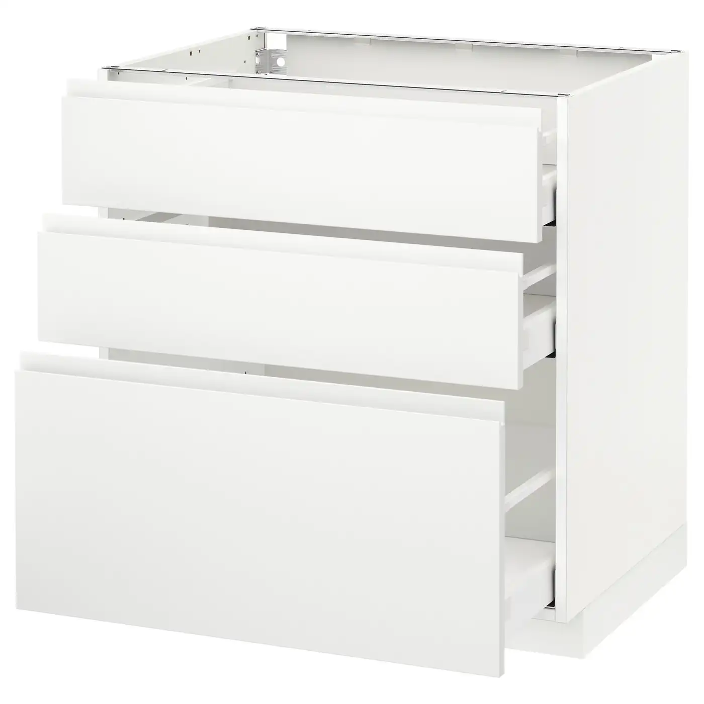 IKEA METOD Base cabinet with 3 drawers 80x60 cm MAXIMERA white/VOXTORP matt white