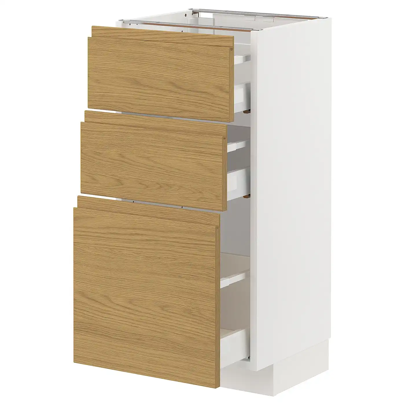 Compare all IKEA METOD Base cabinet with 3 drawers 40x37 cm MAXIMERA white/VOXTORP oak effect prices