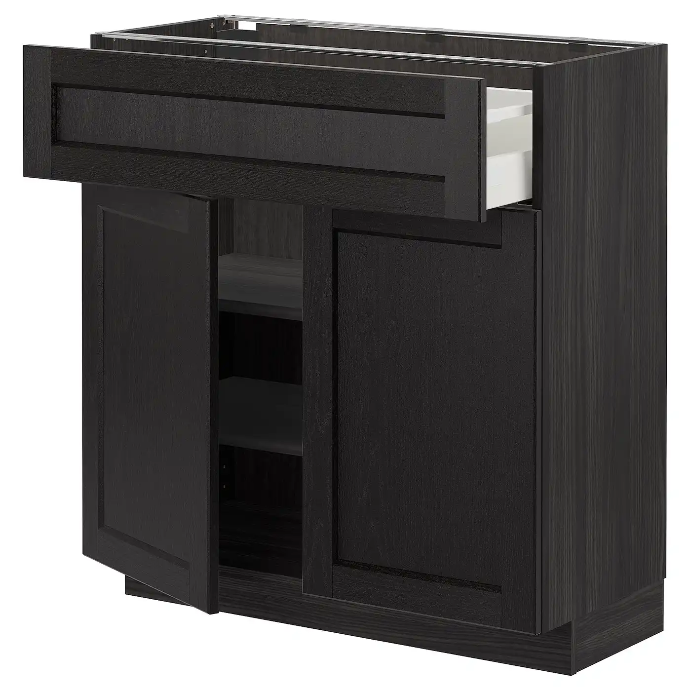 IKEA METOD Base cabinet with drawer and 2 doors 80x37 cm MAXIMERA black/LERHYTTAN black stained
