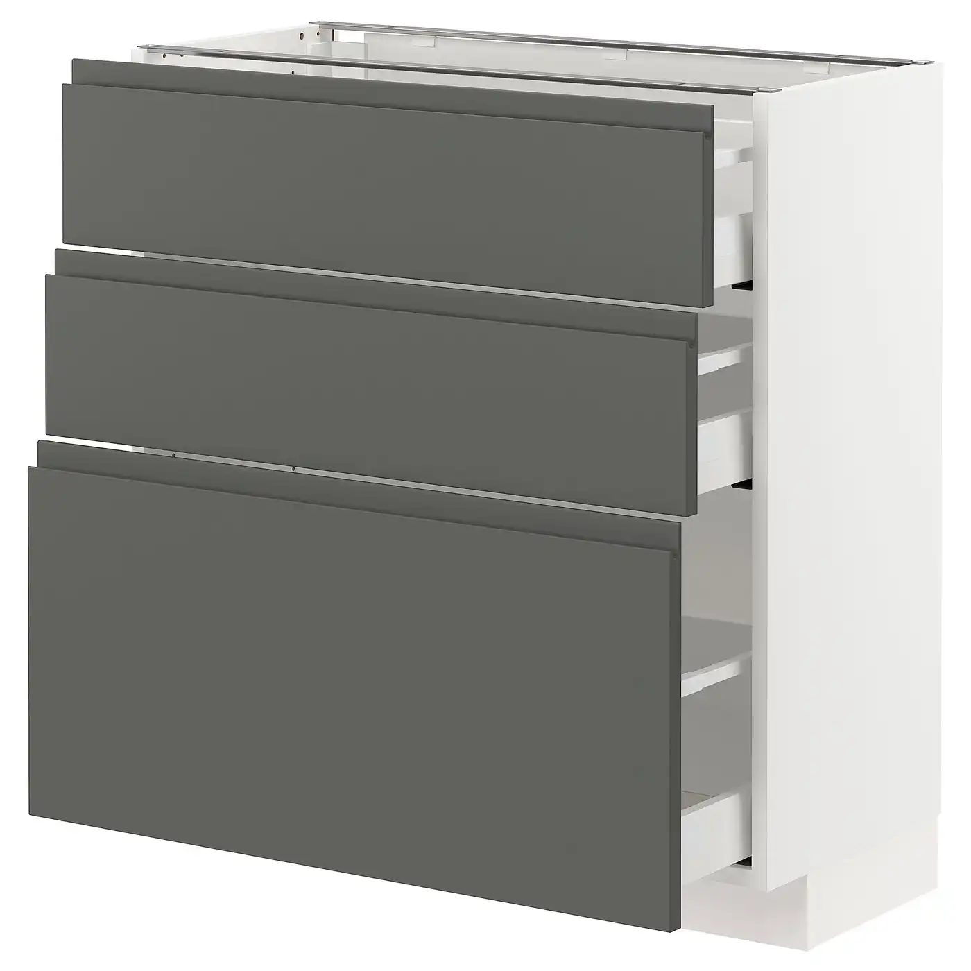 METOD / MAXIMERA Base cabinet with 3 drawers - white/Voxtorp dark grey 80x37 cm
