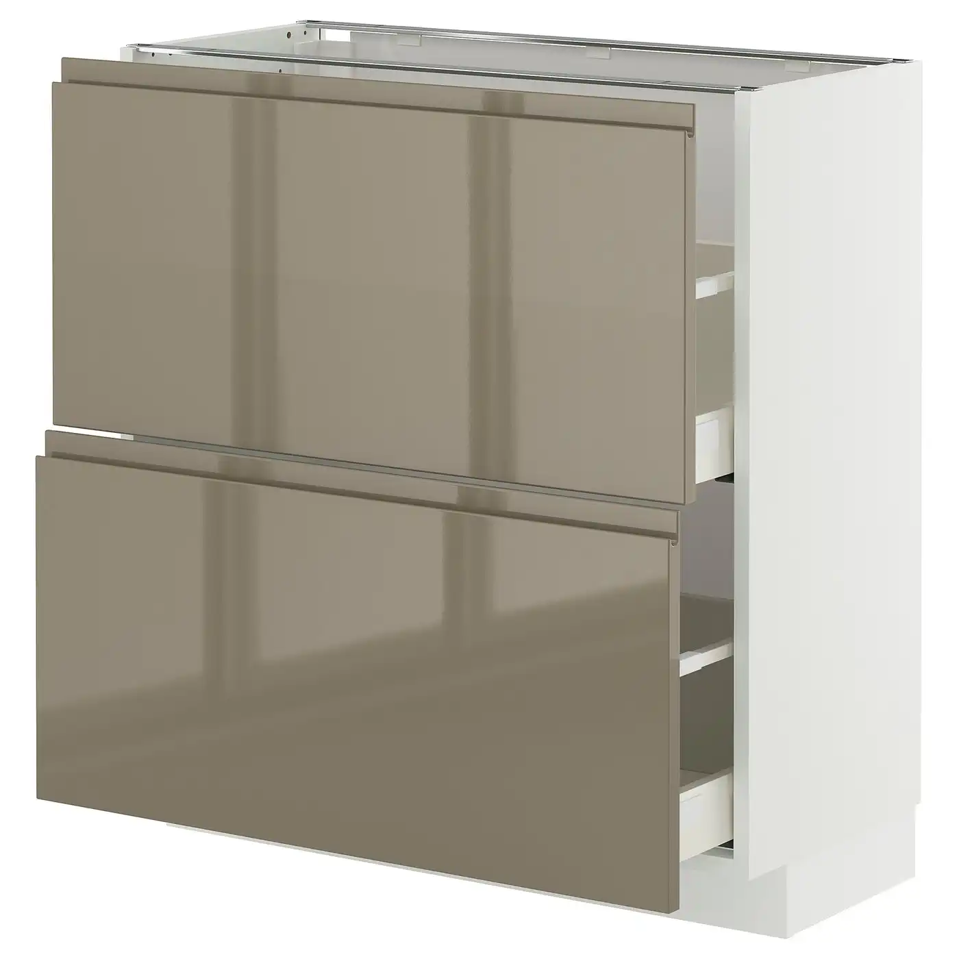 METOD / MAXIMERA Base cabinet with 2 drawers - white/Voxtorp high-gloss dark grey-brown 80x37 cm