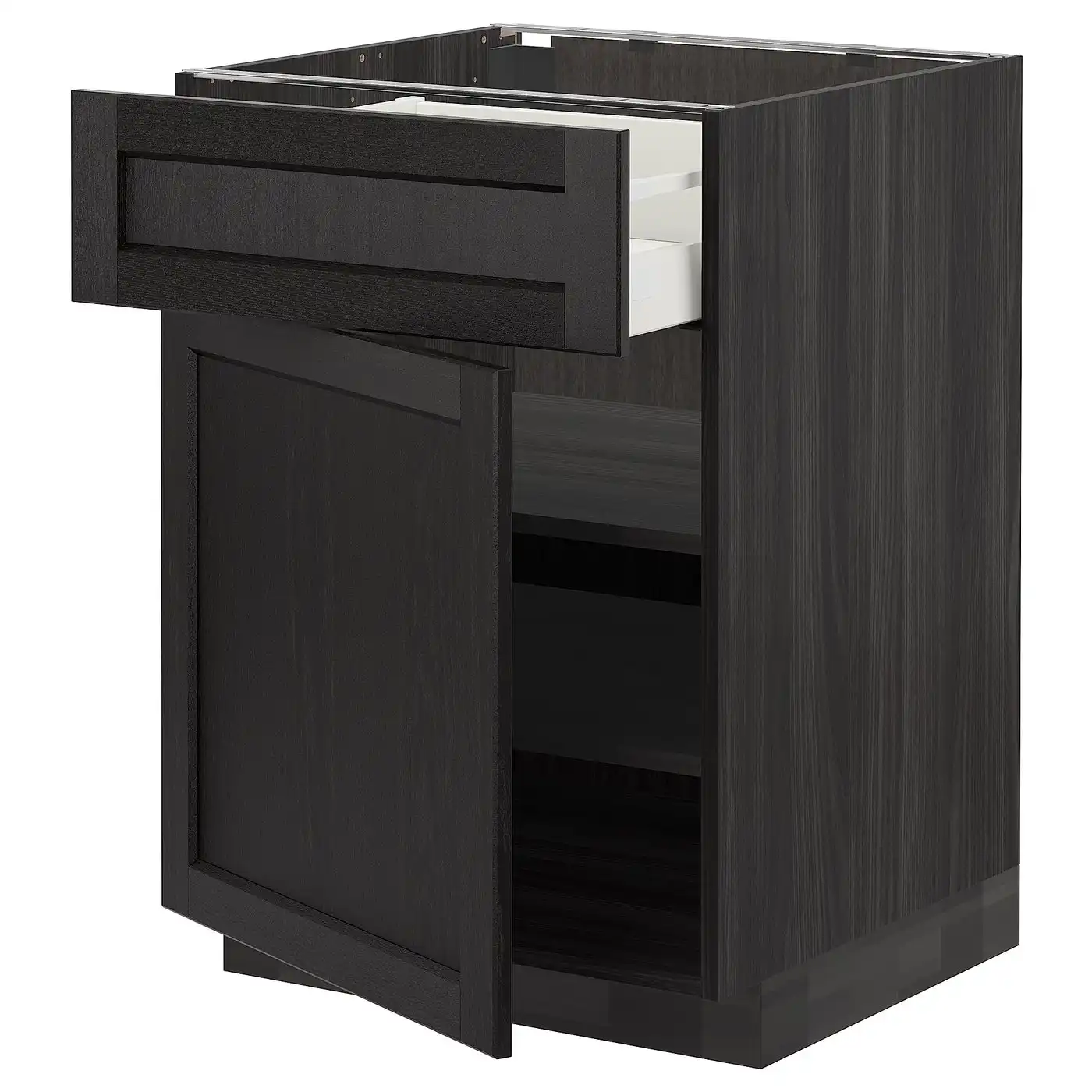 IKEA METOD Base cabinet with drawer and door 60x60 cm MAXIMERA black/LERHYTTAN black stained