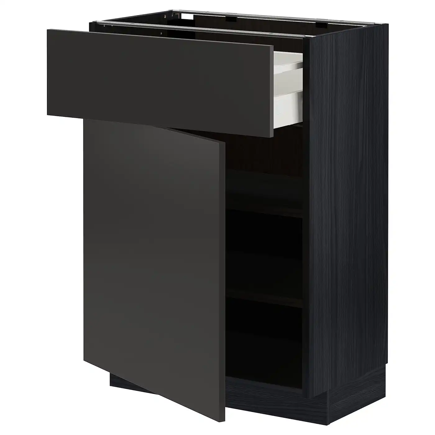 IKEA METOD Base cabinet with drawer and door 60x37 cm MAXIMERA black/Nickebo matt anthracite