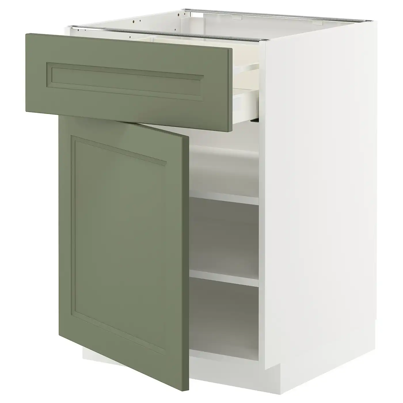 IKEA METOD Base cabinet with drawer and door 60x60 cm MAXIMERA white/AXSTAD grey-green