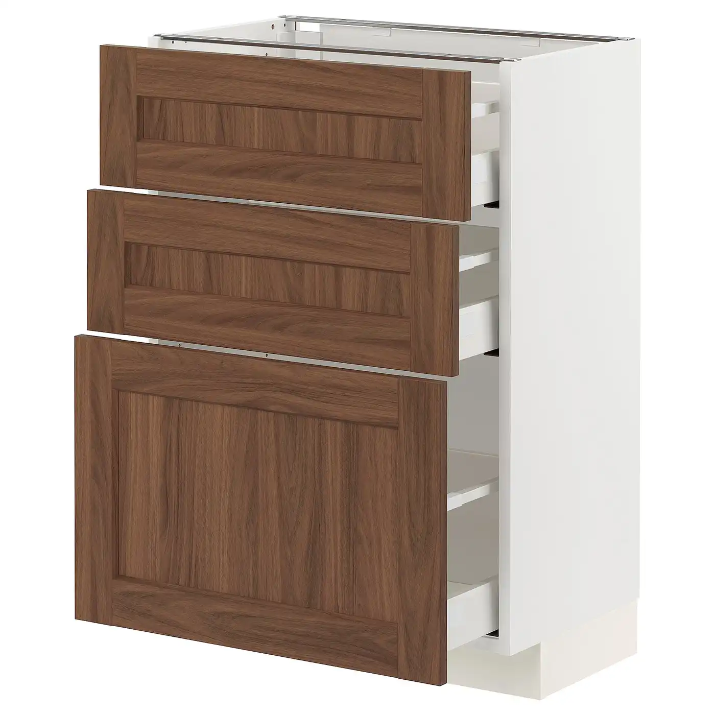METOD / MAXIMERA Base cabinet with 3 drawers - white Enköping/brown walnut effect 60x37 cm