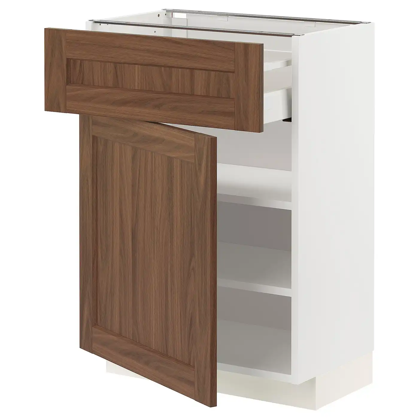 METOD / MAXIMERA Base cabinet with drawer/door - white Enköping/brown walnut effect 60x37 cm
