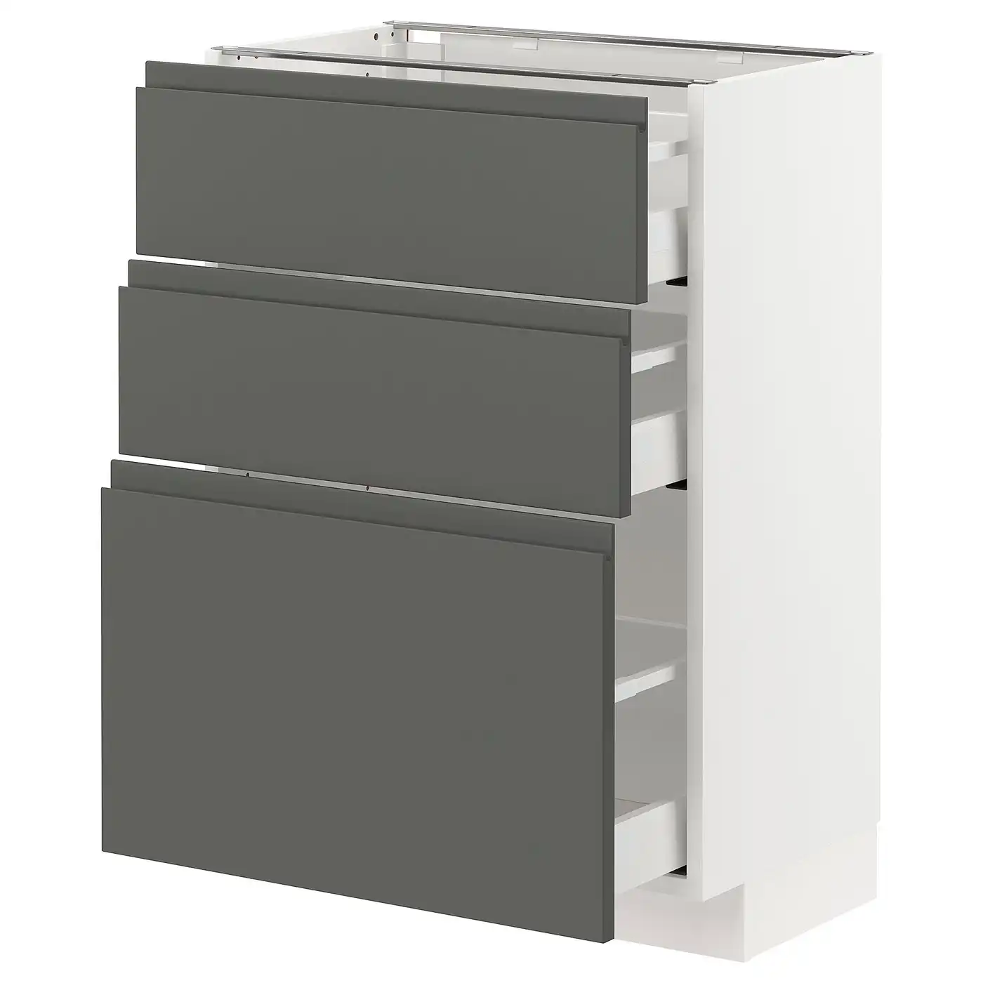 METOD / MAXIMERA Base cabinet with 3 drawers - white/Voxtorp dark grey 60x37 cm