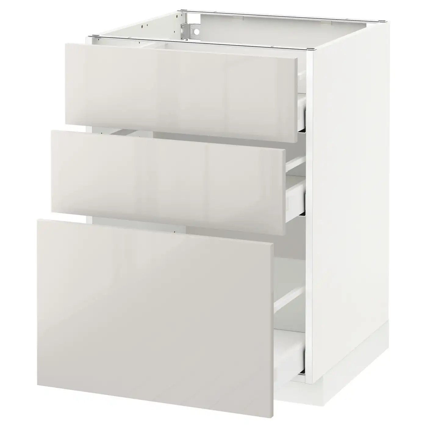 METOD / MAXIMERA Base cabinet with 3 drawers - white/Ringhult light grey 60x60 cm