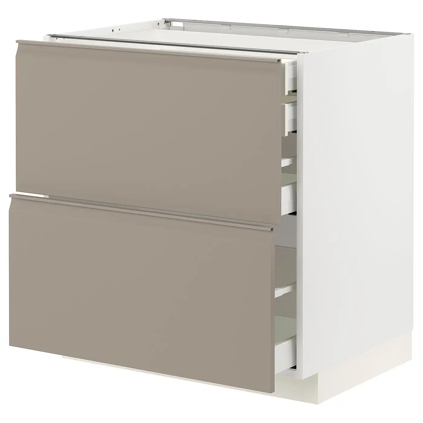 METOD / MAXIMERA Base cb 2 frnts/2 low/1 md/1 hi drw - white/Upplöv matt dark beige 80x60 cm