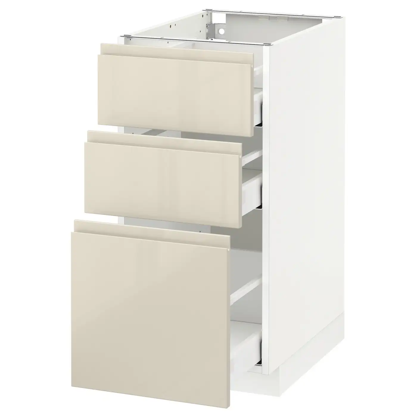 METOD / MAXIMERA Base cabinet with 3 drawers - white/Voxtorp high-gloss light beige 40x60 cm