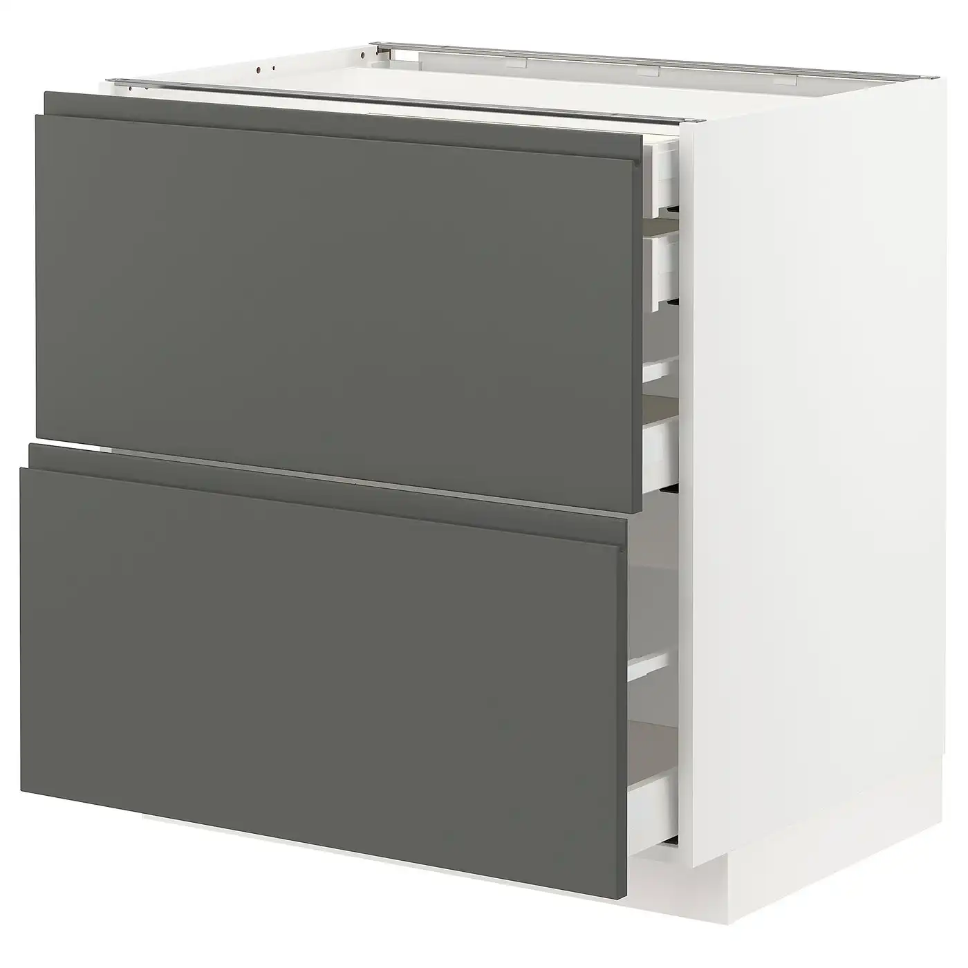 METOD / MAXIMERA Base cb 2 frnts/2 low/1 md/1 hi drw - white/Voxtorp dark grey 80x60 cm