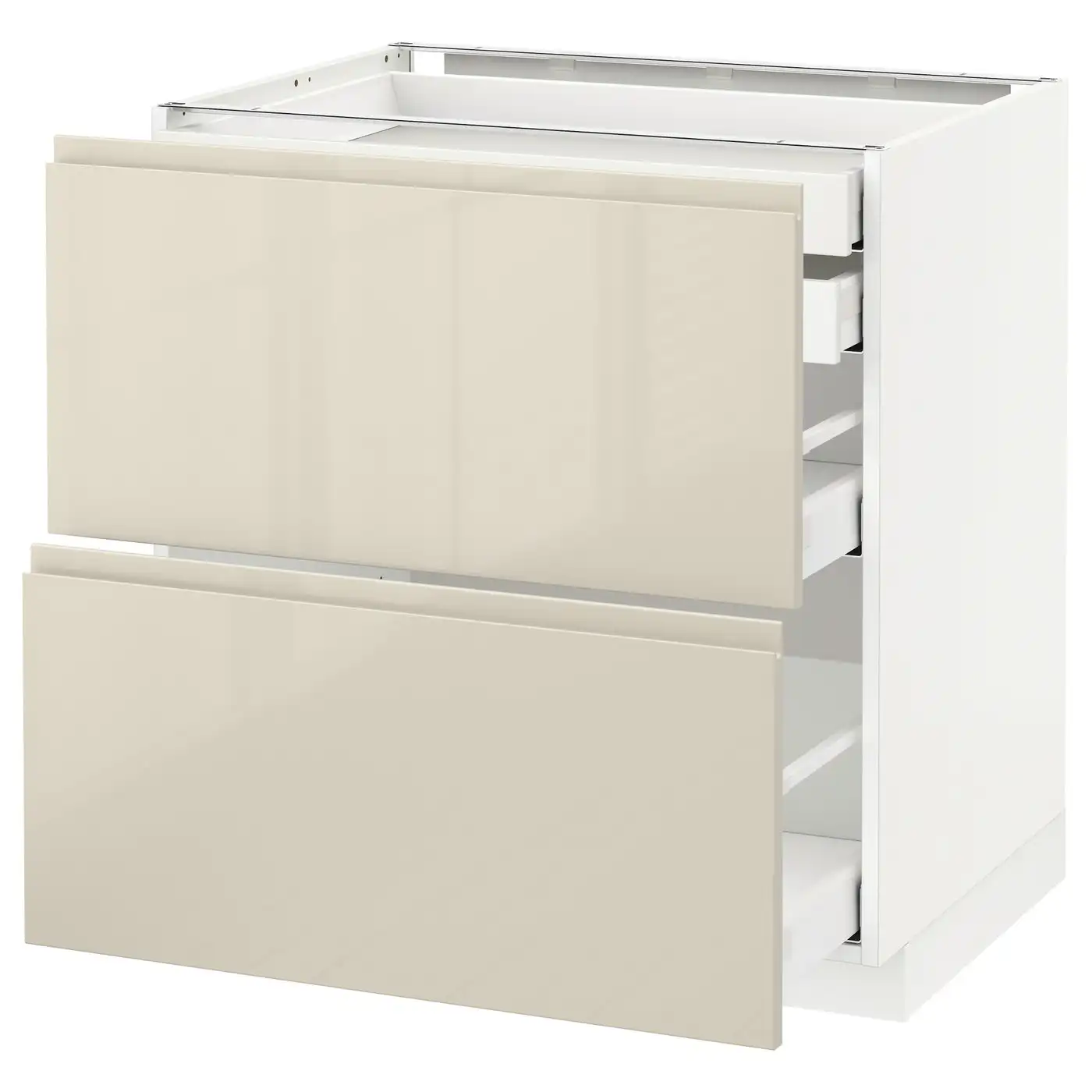 METOD / MAXIMERA Base cb 2 frnts/2 low/1 md/1 hi drw - white/Voxtorp high-gloss light beige 80x60 cm