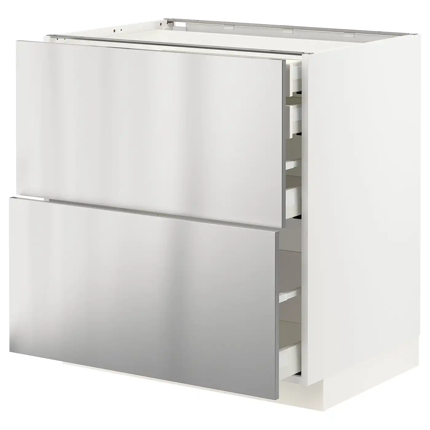 METOD / MAXIMERA Base cb 2 frnts/2 low/1 md/1 hi drw - white/Vårsta stainless steel 80x60 cm