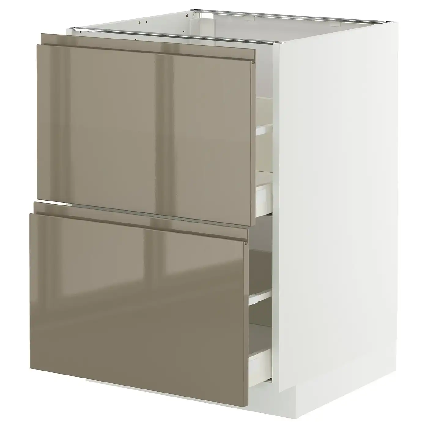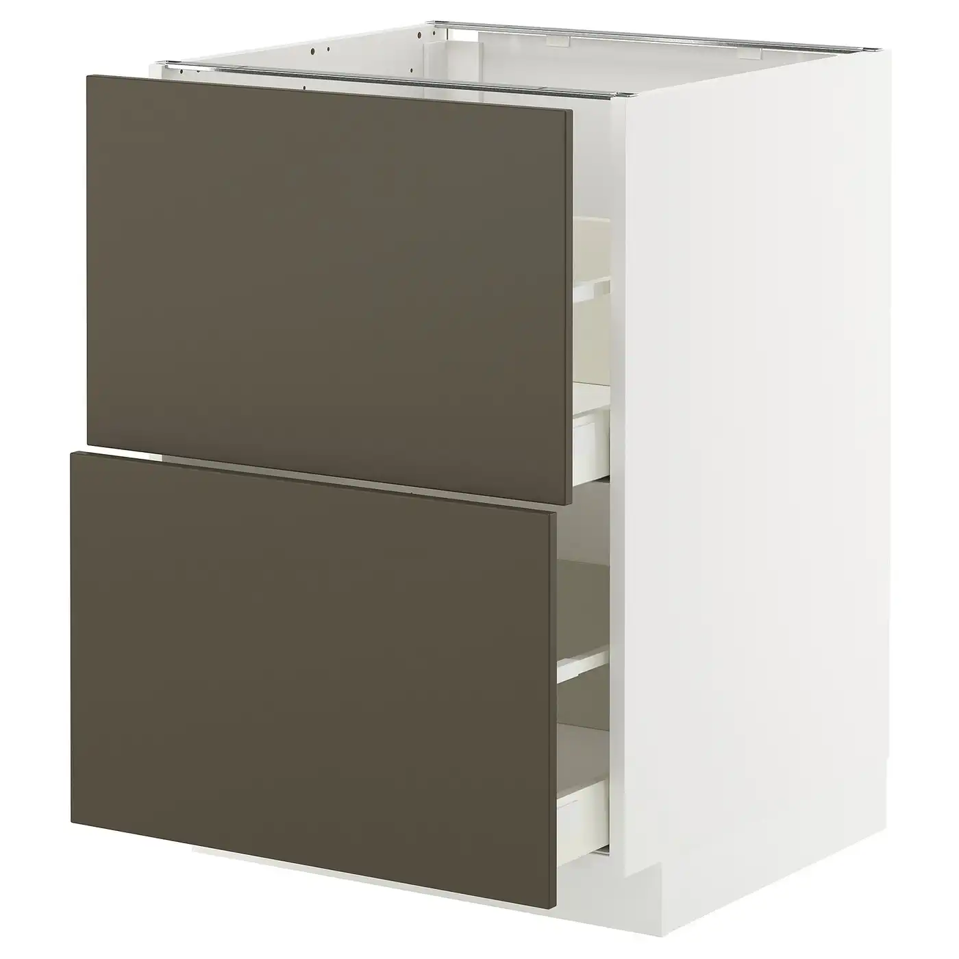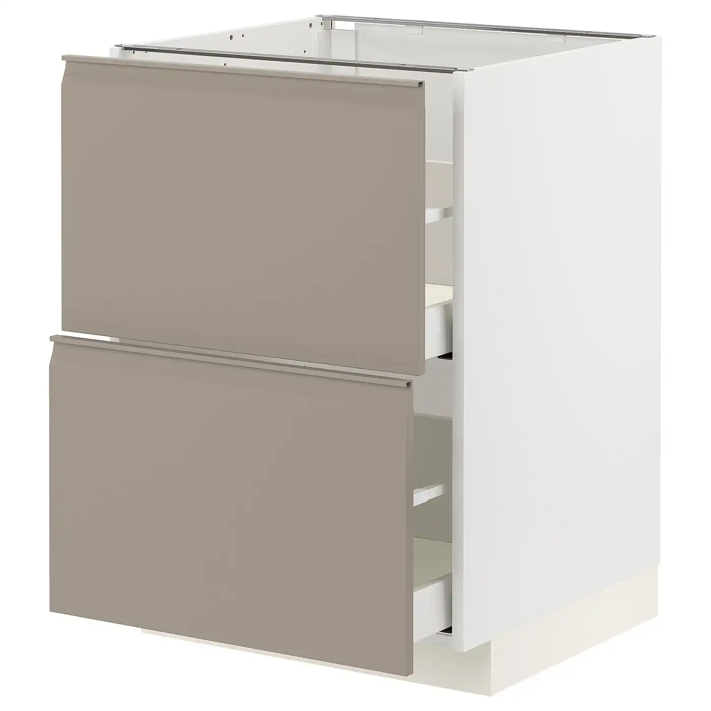 METOD / MAXIMERA Base cb 2 fronts/2 high drawers - white/Upplöv matt dark beige 60x60 cm