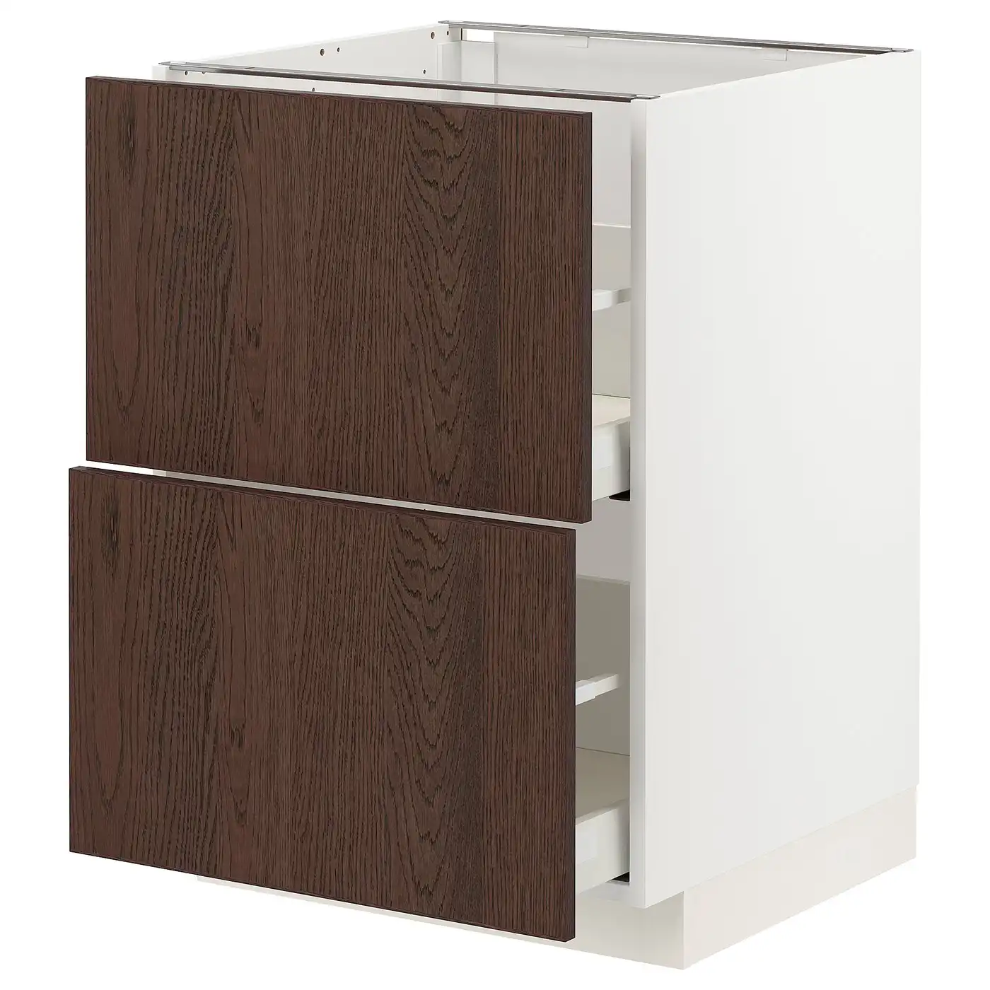 METOD / MAXIMERA Base cb 2 fronts/2 high drawers - white Enköping/brown walnut effect 60x60 cm