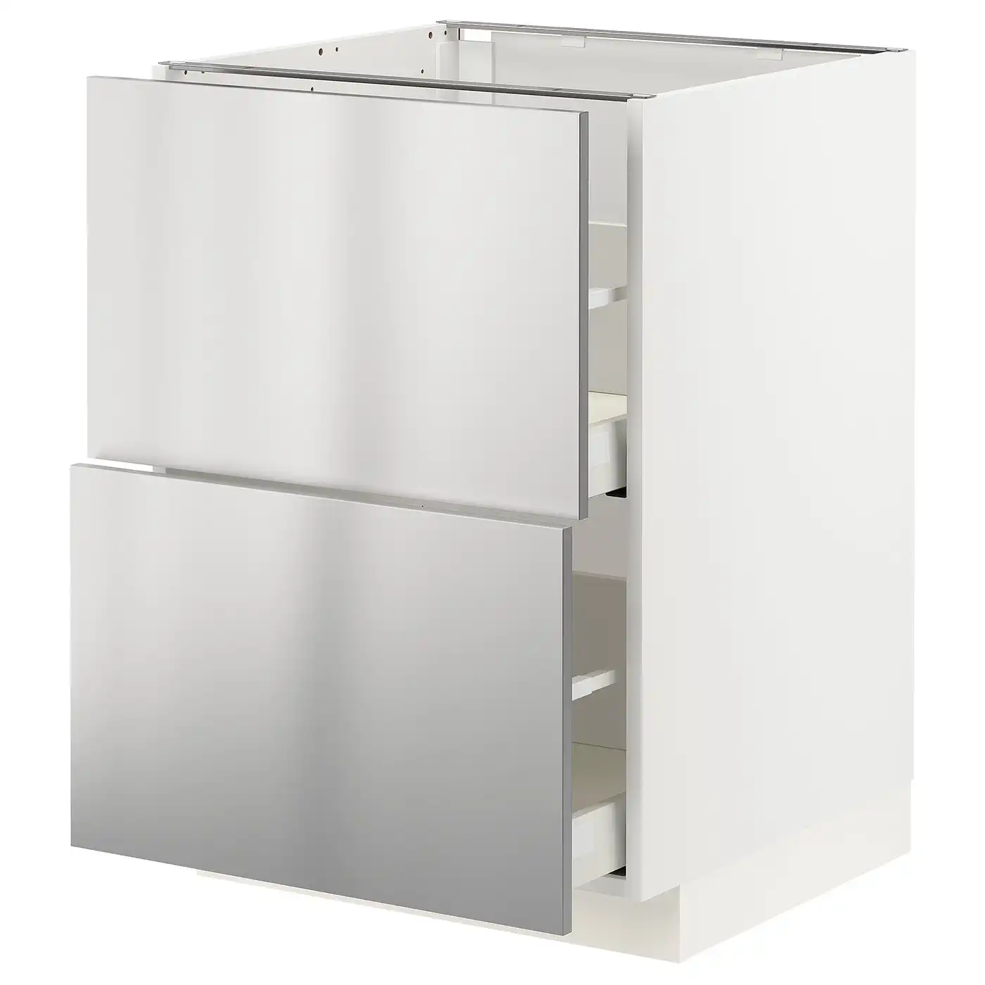 METOD / MAXIMERA Base cb 2 fronts/2 high drawers - white/Vårsta stainless steel 60x60 cm