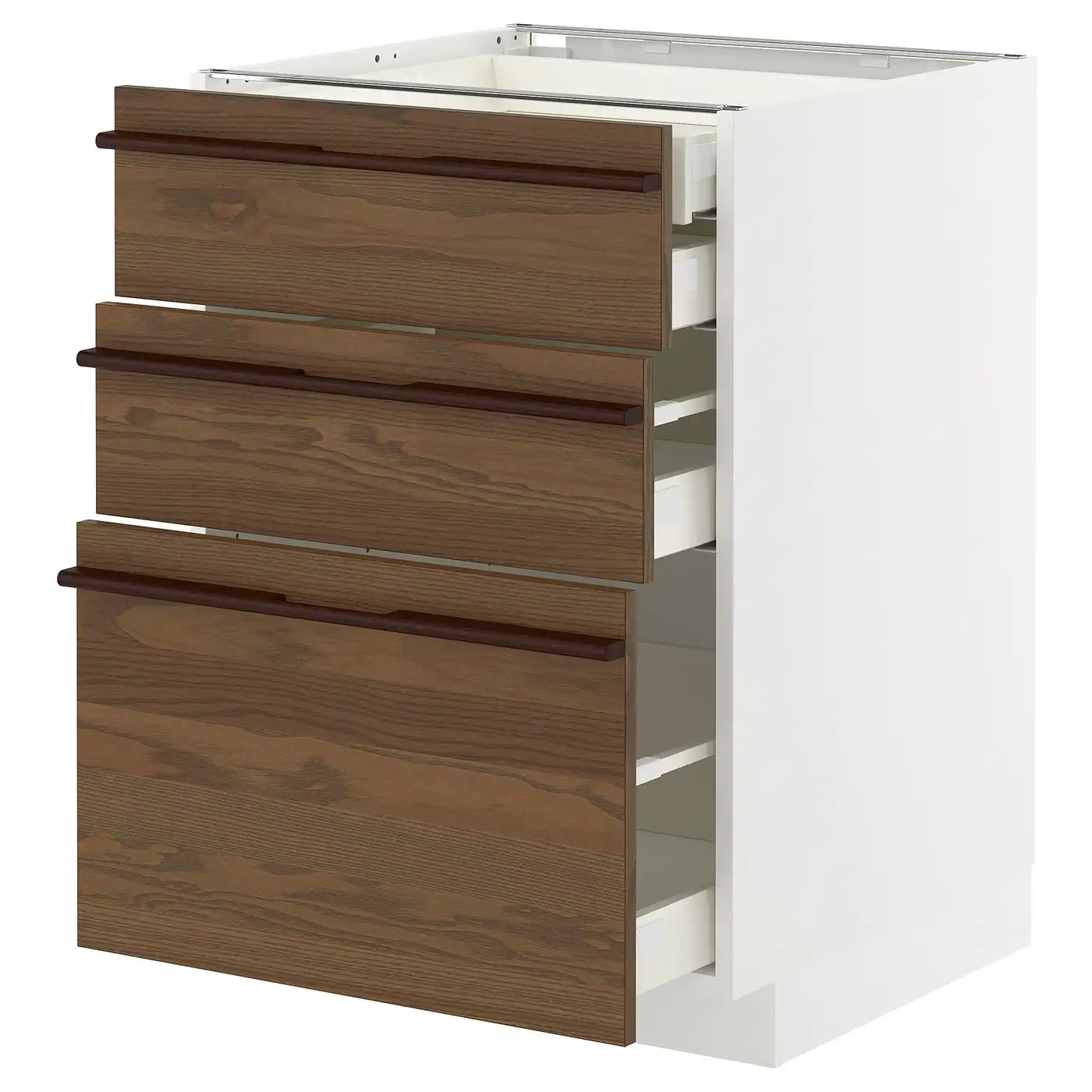 METOD / MAXIMERA Base cb 3 frnts/2 low/1 md/1 hi drw - white/Stensta dark brown ash veneer 60x60 cm