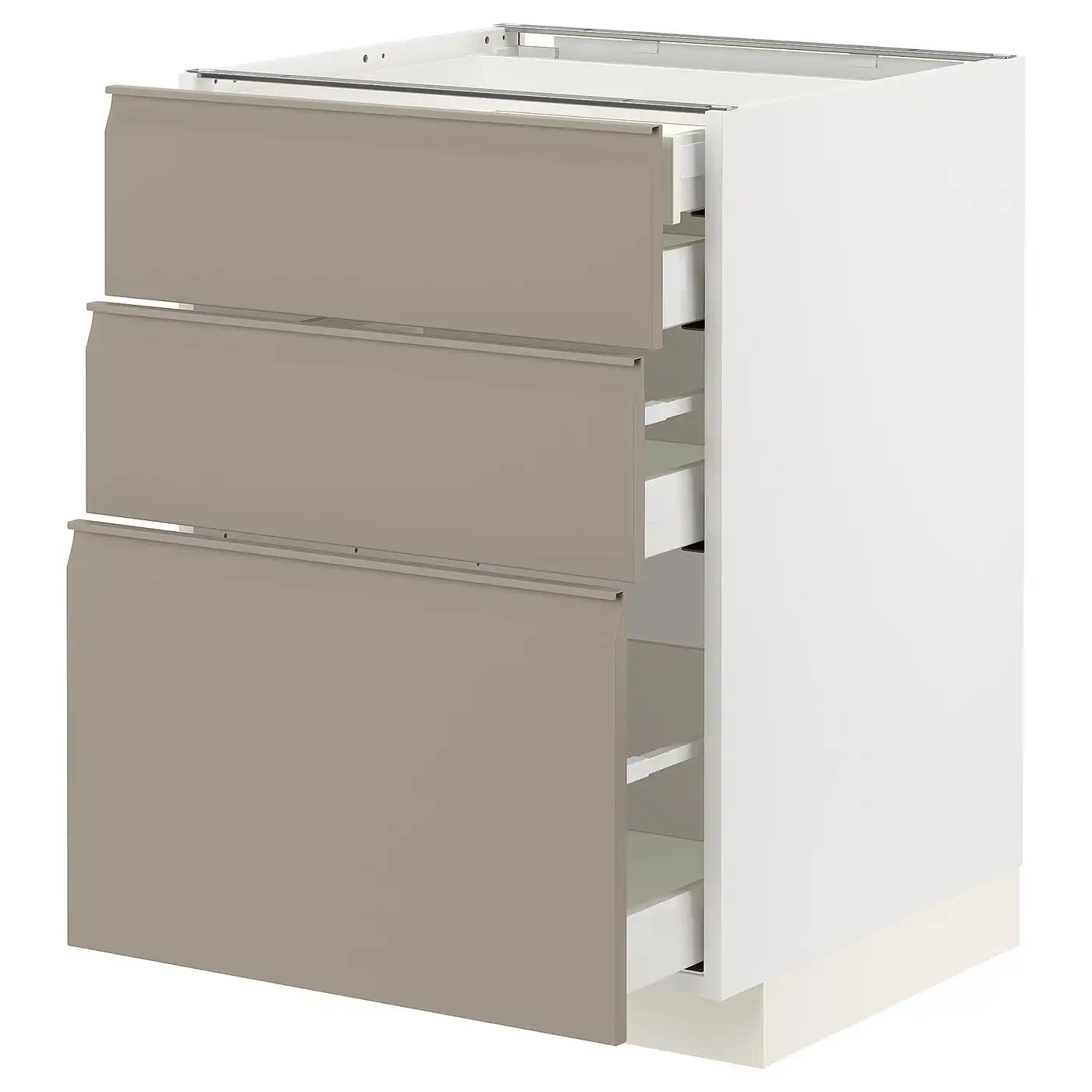 METOD / MAXIMERA Base cb 3 frnts/2 low/1 md/1 hi drw - white/Upplöv matt dark beige 60x60 cm