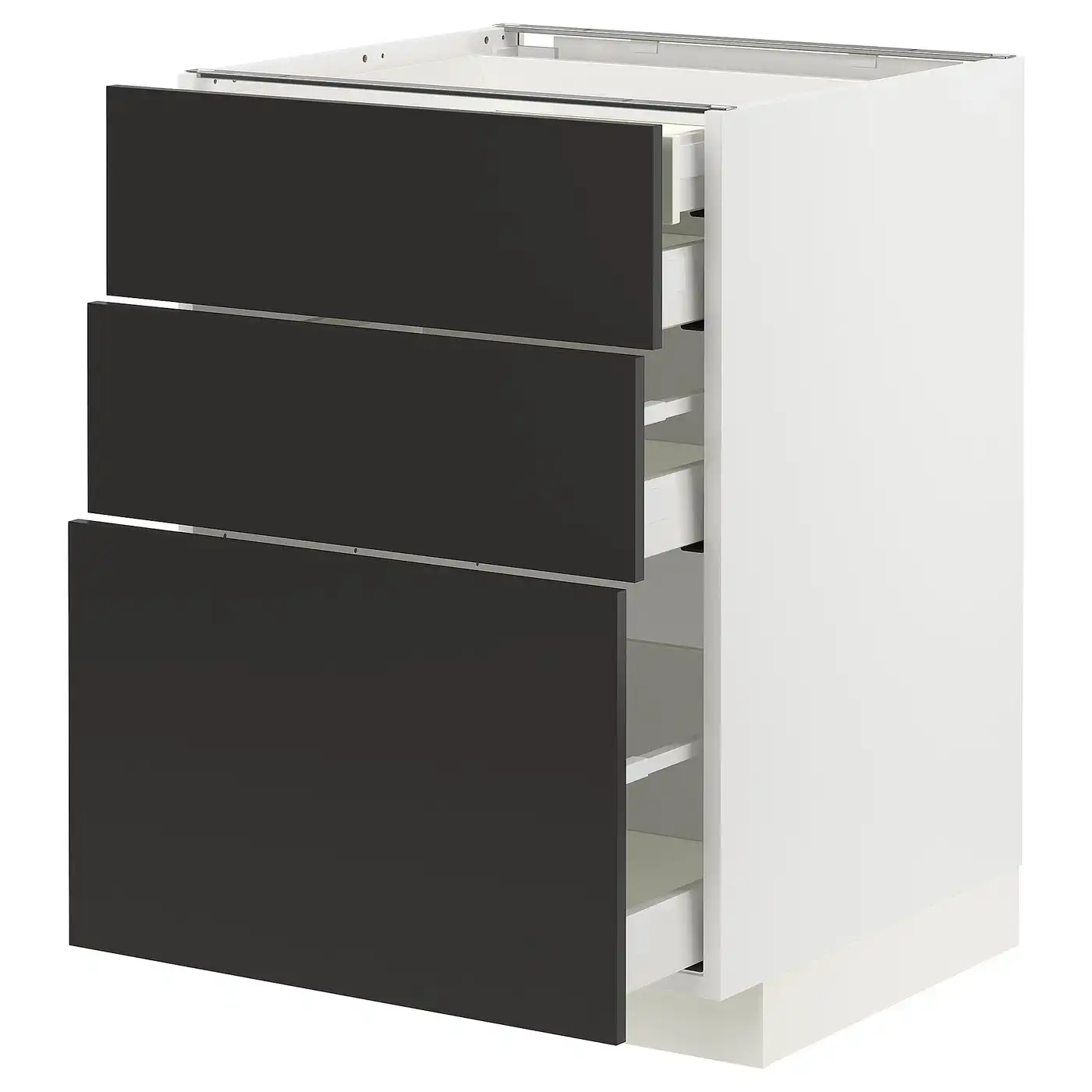 METOD / MAXIMERA Base cb 3 frnts/2 low/1 md/1 hi drw - white/Nickebo matt anthracite 60x60 cm
