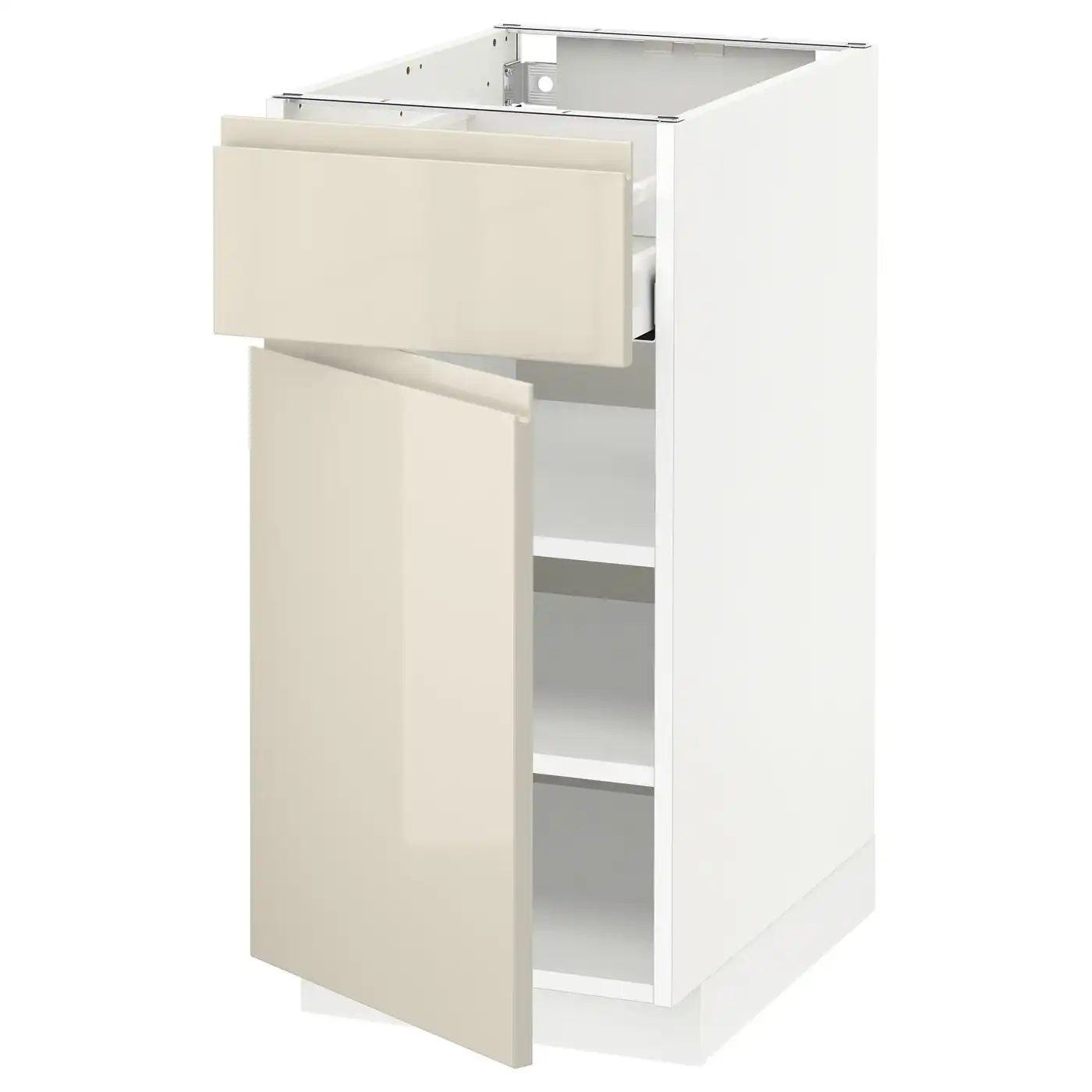 METOD / MAXIMERA Base cabinet with drawer/door - white/Voxtorp high-gloss light beige 40x60 cm