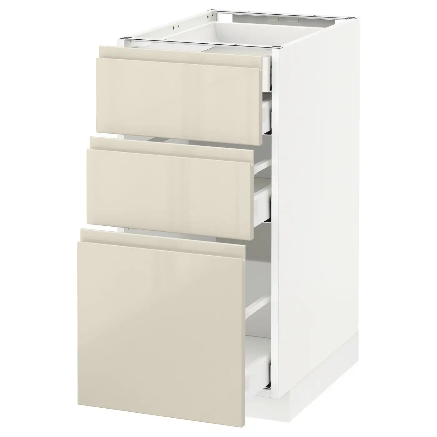 METOD / MAXIMERA Base cb 3 frnts/2 low/1 md/1 hi drw - white/Voxtorp high-gloss light beige 40x60 cm