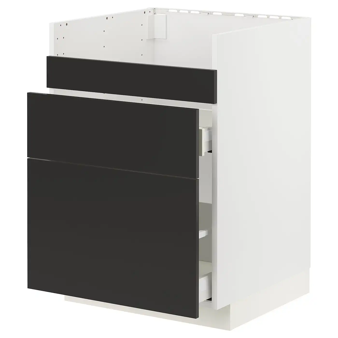 METOD / MAXIMERA Base cb f HAVSEN snk/3 frnts/2 drws - white/Nickebo matt anthracite 60x60 cm