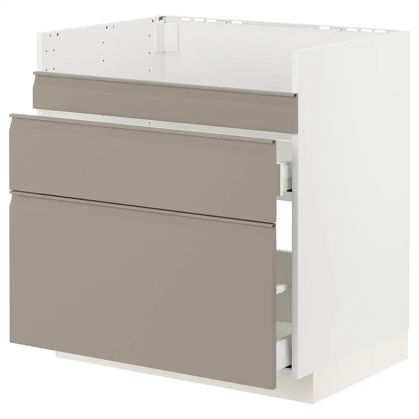 METOD / MAXIMERA Base cb f HAVSEN snk/3 frnts/2 drws - white/Upplöv matt dark beige 80x60 cm
